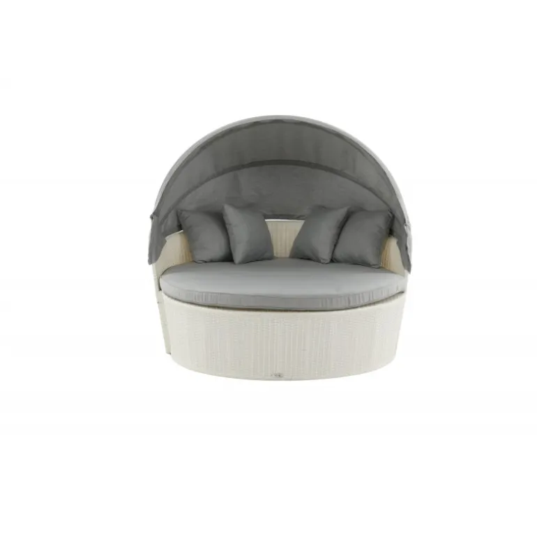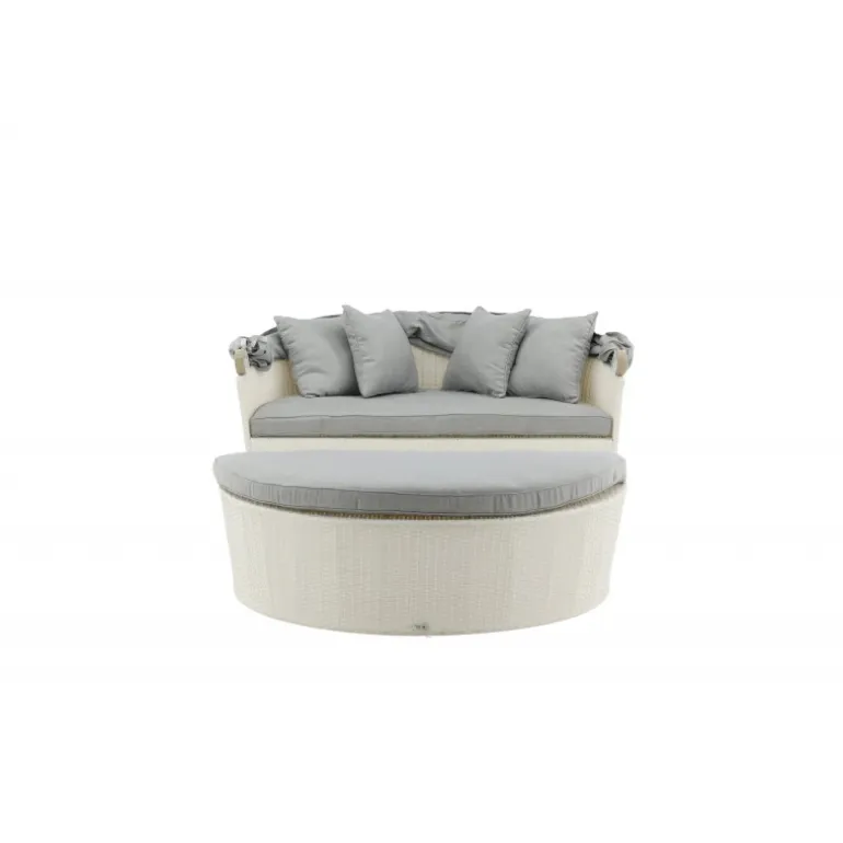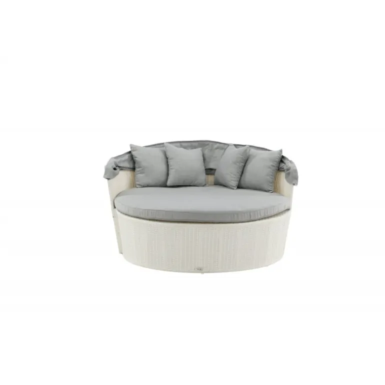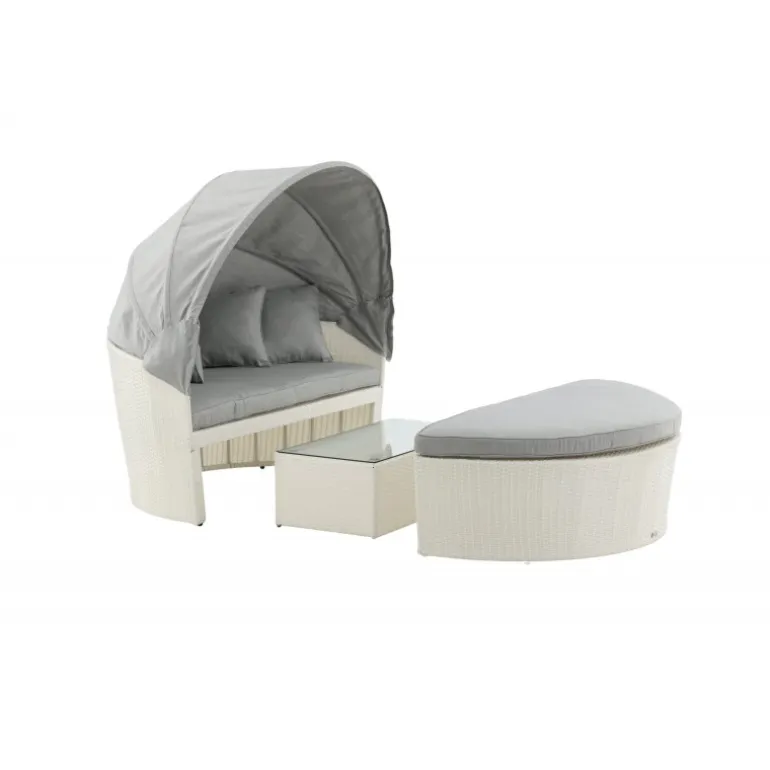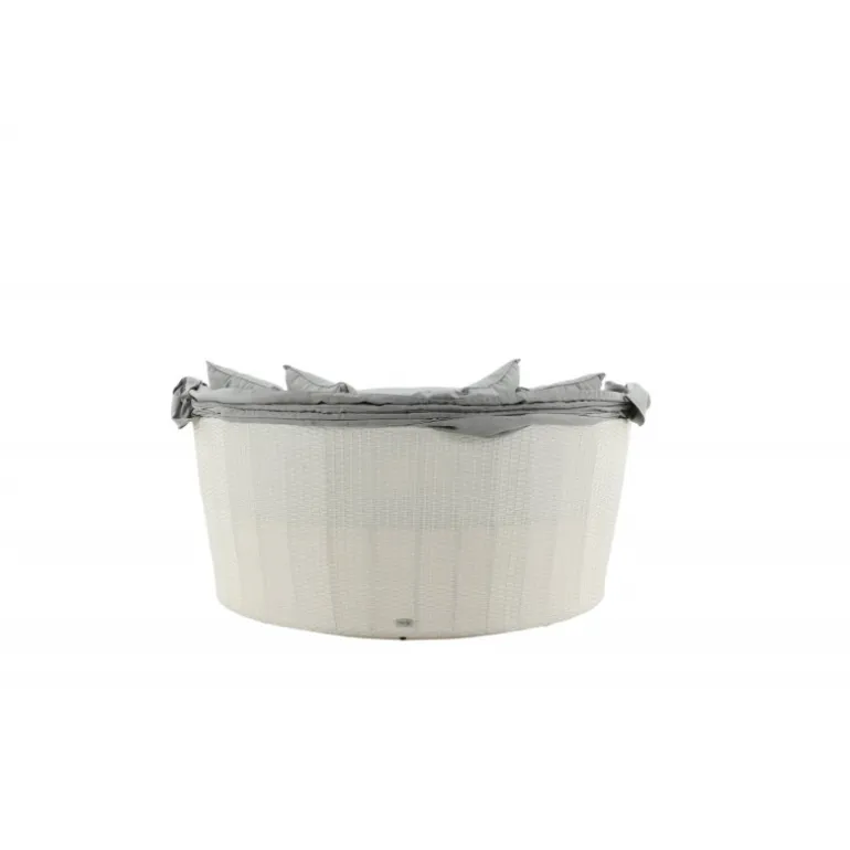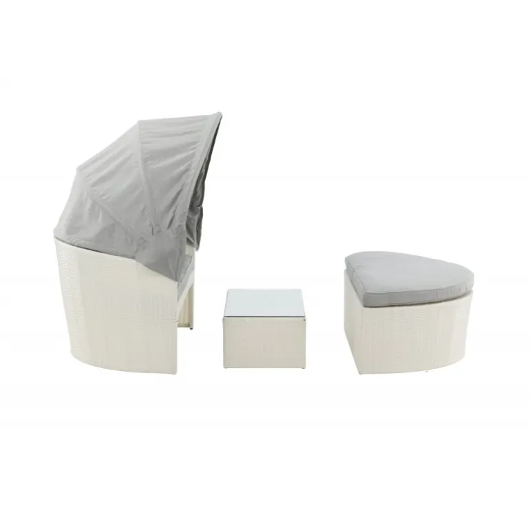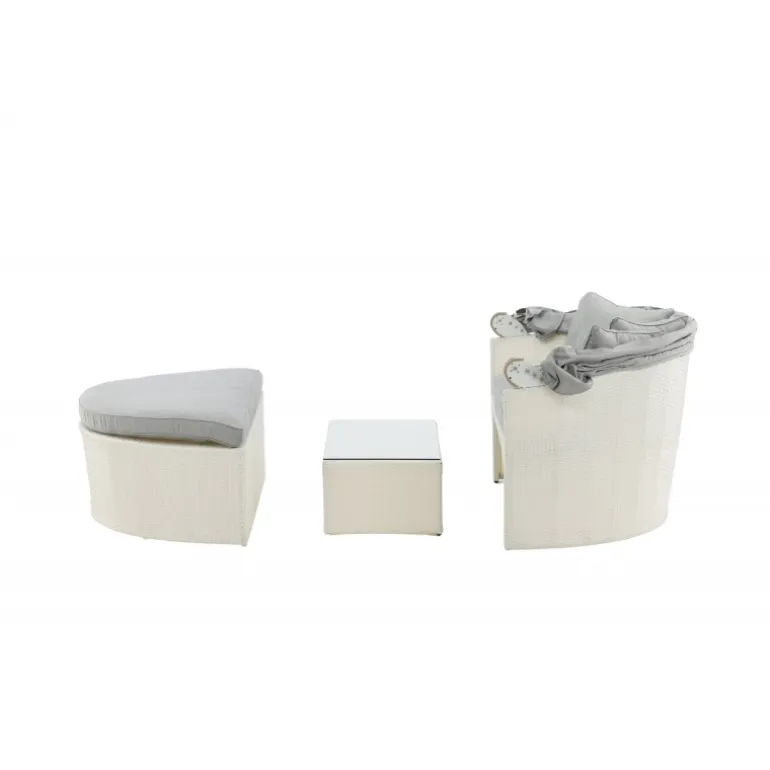 - Hvid kunstig rattan: Holdbart og vejrbestandigt materiale.