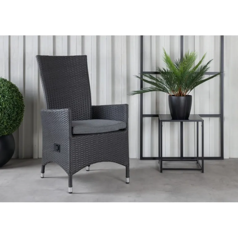 Sid komfortabelt denne sommer i en moderne spisestol med foldbar ryg for optimal komfort! Padova kommer i en smuk sort farve, der er både tidløs og stilfuld. Stellet er i aluminium, og stolen er i sort kunstig rattan. Indret terrassen med en komfortabel og robust stol, der holder over tid. Vedligeholdelsesråd: Konstrite er et plastmateriale, der er perfekt til vores skandinaviske klima. Materialet er UV-resistent og kan modstå vejr og vind. Det faktum, at det er UV-resistent, betyder, at møblerne ikke falmer, men vi anbefaler altid at opbevare møblerne under et møbelovertræk eller på anden vis tørt og køligt for at forlænge levetiden.
