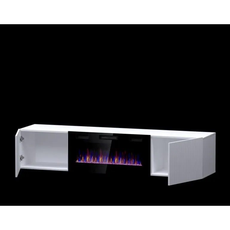 Oplev den perfekte kombination af stil og funktionalitet med PAFOS EF TV bord 180 hvid/hvid med Sorte ben. Dette elegante TV bord tilbyder mulighed for installation af en pejs, som kan bestilles separat (CAMA-KOMINEK). Det er designet med et robust korpus af lamineret mat spånplade og frontpaneler af lamineret MDF-plade beklædt med folie, hvilket sikrer langvarig holdbarhed. Med synlige skæringer og ABS-kanter er dette TV bord både praktisk og æstetisk tiltalende. De Sorte plastben tilføjer et moderne touch til ethvert rum. Giv dit hjem et løft med dette stilfulde og funktionelle møbel.