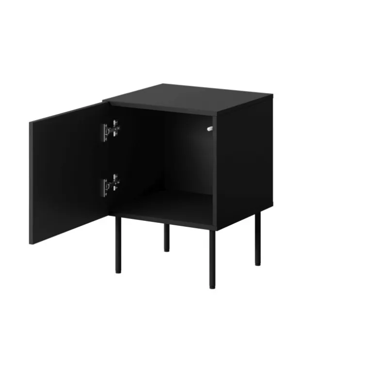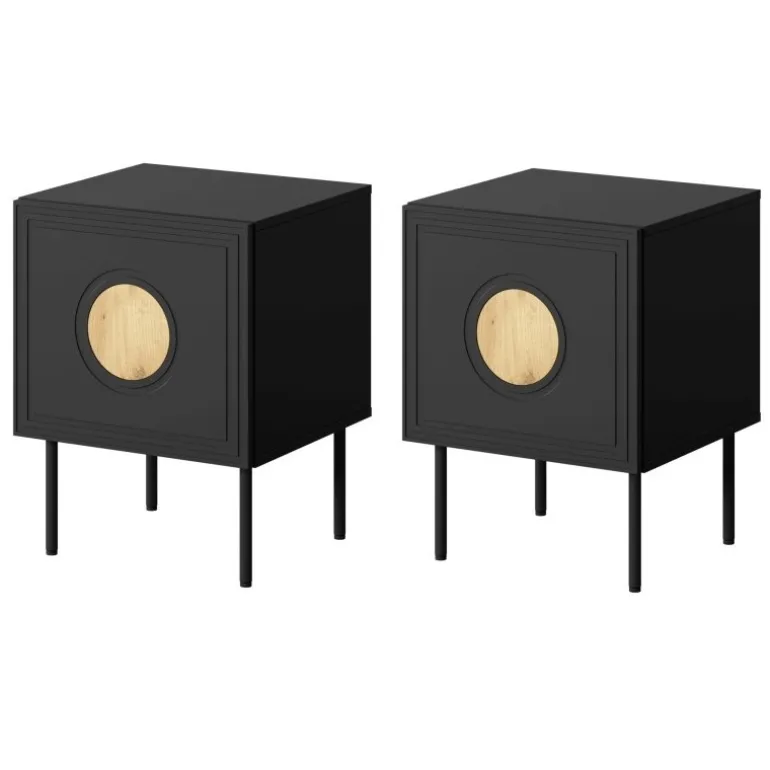 Opgrader dit soveværelse med PALAZZO natbord. Dette stilfulde sæt indeholder to natborde, der kombinerer funktionalitet og moderne design. Med dimensioner på højde: [h] cm, bredde: [w] cm, dybde: [d] cm, passer det perfekt ved siden af din seng. Kroppen er lavet af mat lamineret spånplade på 16 mm, mens fronten er af MDF-plade på 16 mm, hvilket sikrer både holdbarhed og æstetisk appel. De Sorte metalben på 20 cm giver en elegant kontrast og øger stabiliteten. Håndtaget med PUSH-CLICK systemet gør det nemt at åbne og lukke skufferne uden besvær.