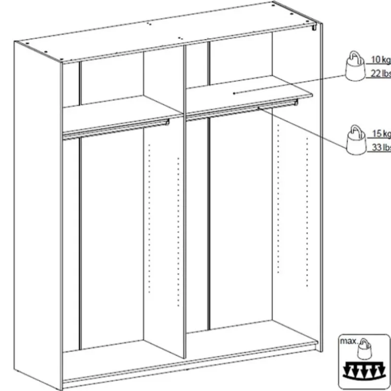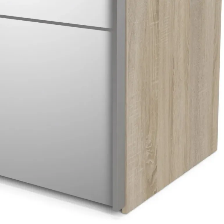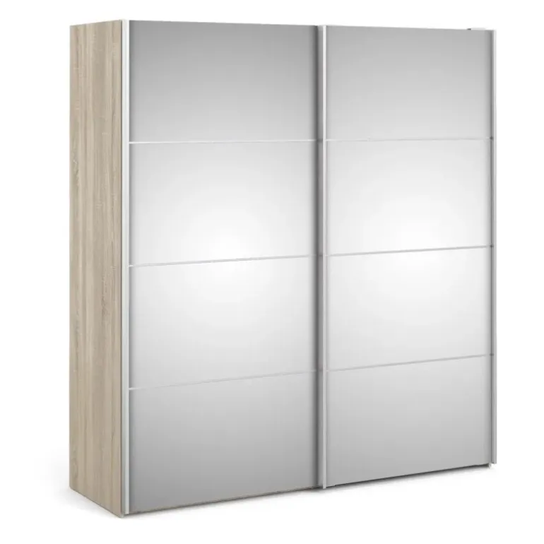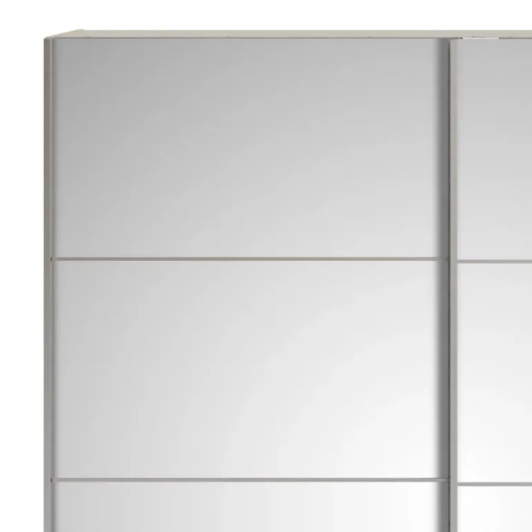 Palermo fra Tvilum er garderobeskabe med 2 x skydelåger i glas til dig, som gerne vil have et godt garderobeskab til en fair pris. Skabet er i hvid med 2 spejllåger. Skabet indeholder 2 bøjlestænger og 2 fastmonteret hylder 182 cm bred. Kollektionen består af klædeskabe i 2.0 meters højde i tre bredder, der alle har gode skydelåger. Korpus og låger er fremstillet i en 15 mm. profil. Garderobeskabe er fremstillet og designet i Danmark.