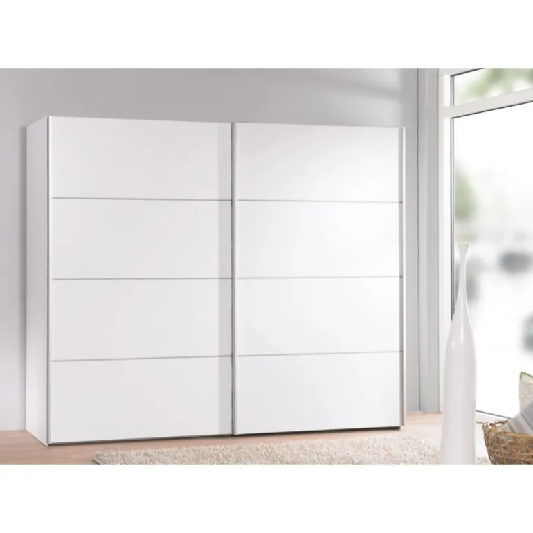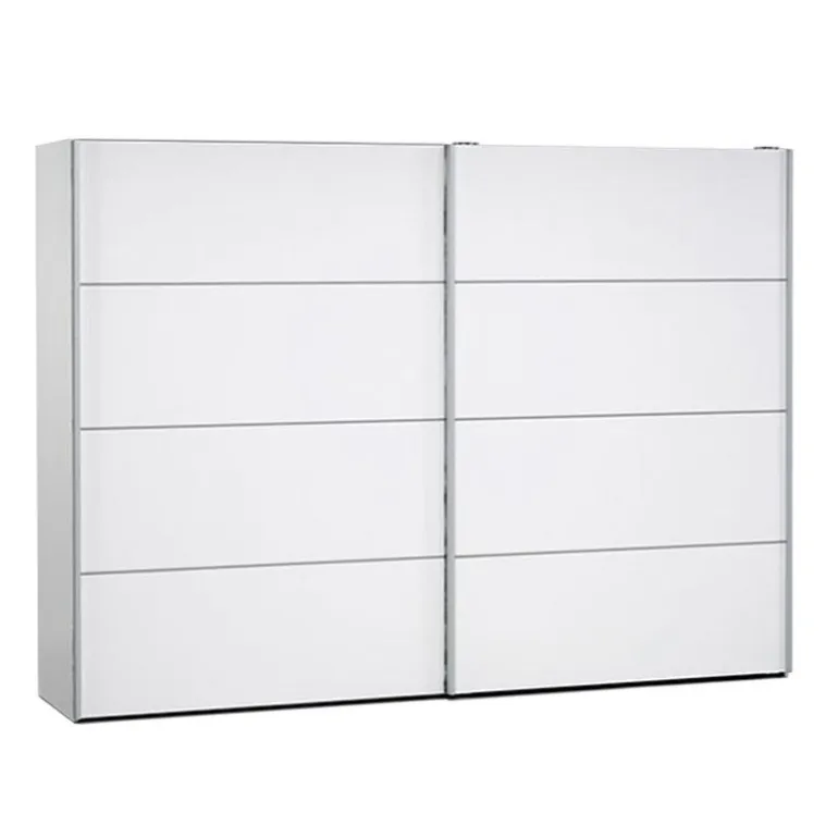Palermo fra Tvilum er garderobeskabe med skydelåger til dig, som gerne vil have et godt garderobeskab til en fair pris. Skabet indeholder 4 bøjlestænger og 4 fastmonteret hylder 242 cm bred. Kollektionen består af klædeskabe i 2.0 meters højde i tre bredder, der alle har gode skydelåger. Korpus og låger er fremstillet i en 15 mm. profil.