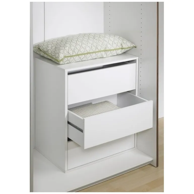 Smart hvid skuffesektion med 3 skuffer til indsats i klædeskab. Indsæt denne sektion i klædeskabet og få en mere fleksibel løsning til organisering af tøj og sko.
