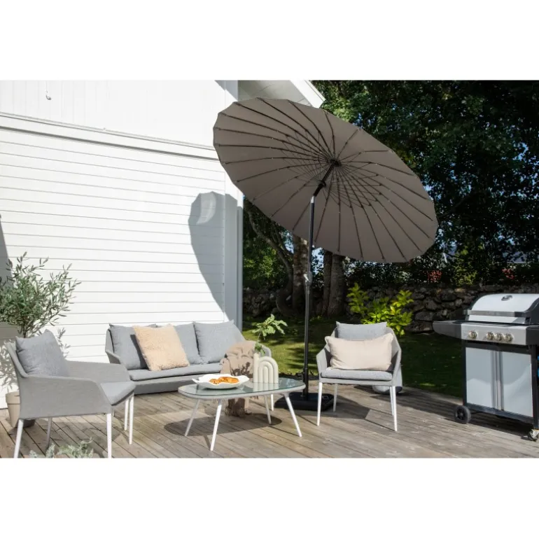 Køb din moderne Palmetto parasol i dag og nyd skyggen på terrassen!