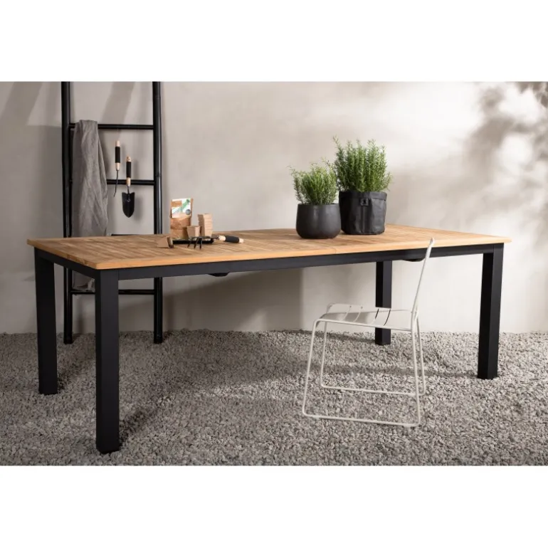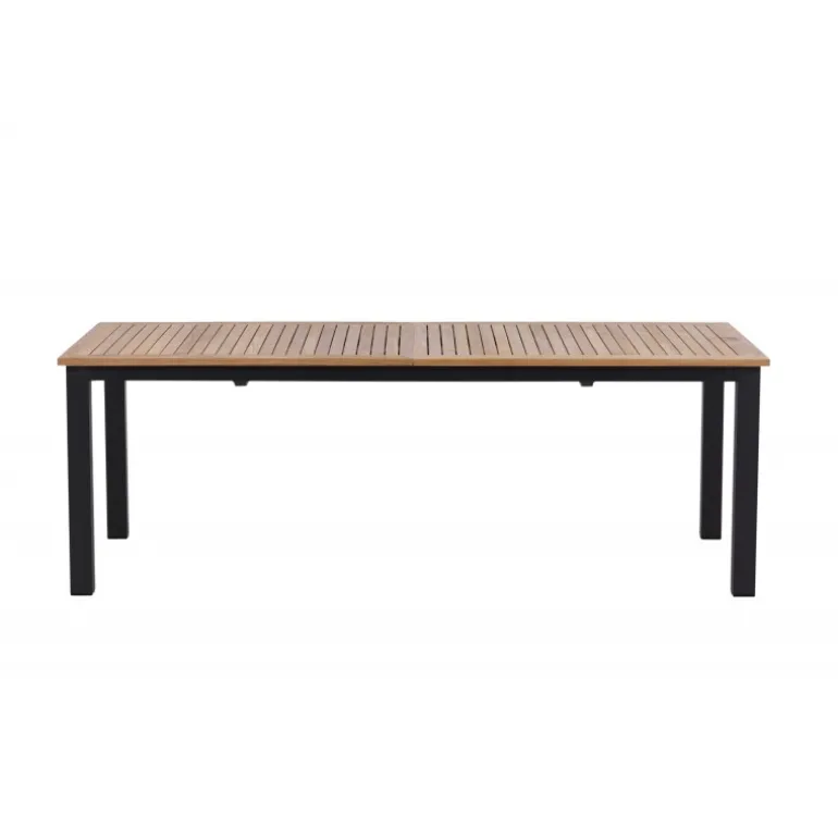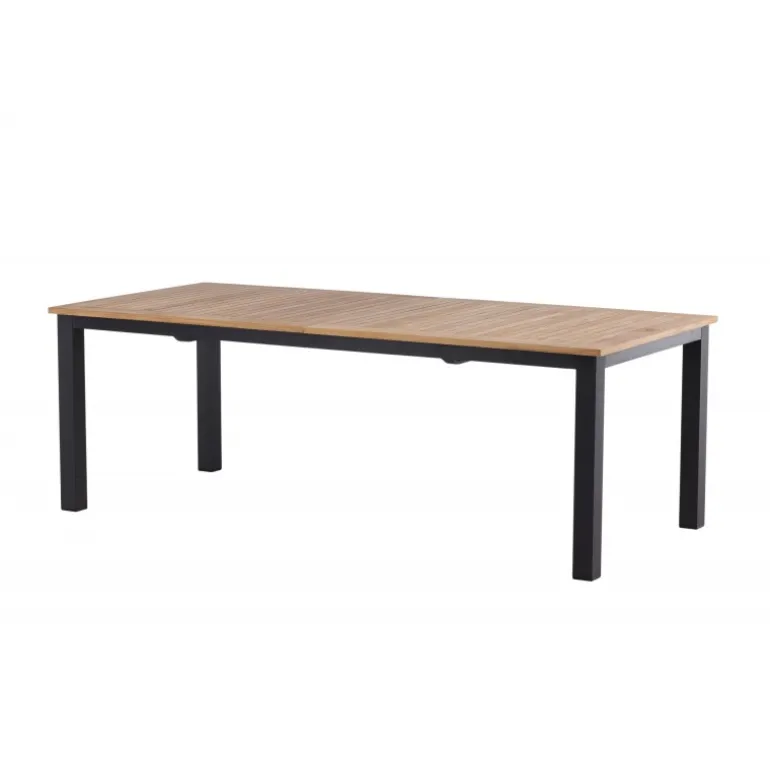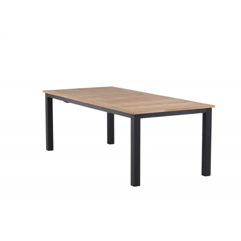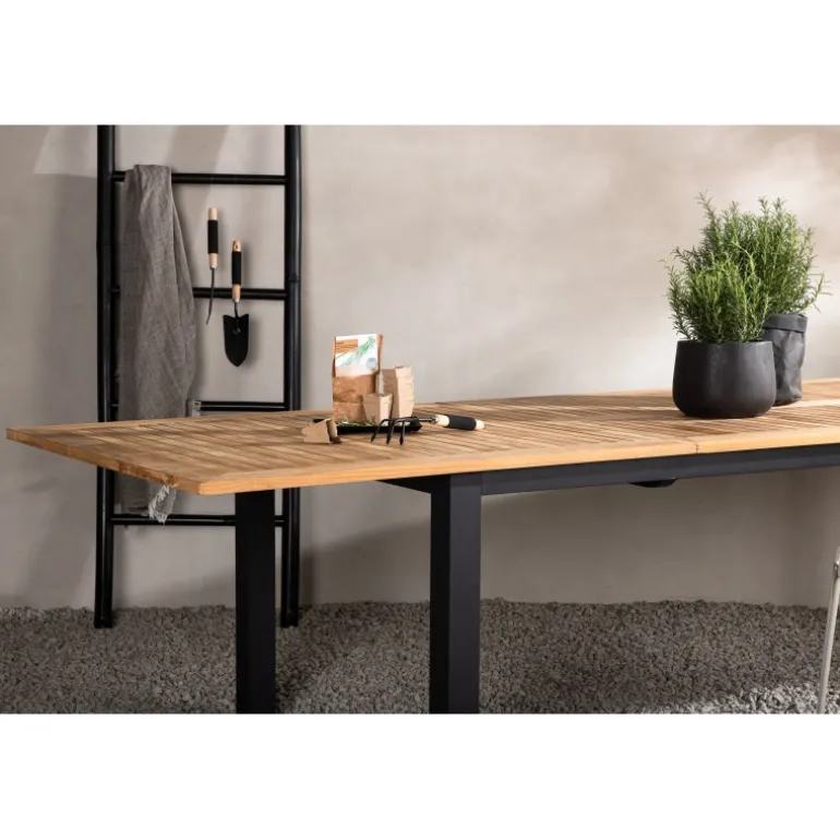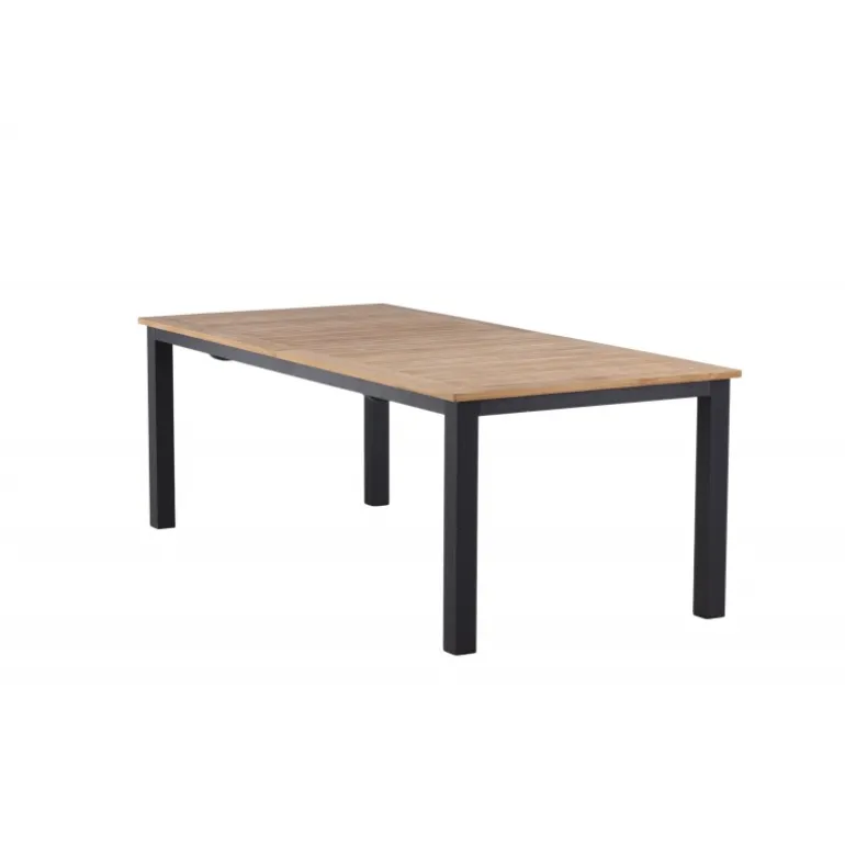 Panama, vores udtrækkelige spisebord i en rektangulær form, er perfekt til både små og store sammenkomster! Bordpladen er lavet af teak og understellet i sort metal – en lækker farvekombination, der holder gennem tiden. Saml familie og venner til dejlige middage i sommersolen og gør dig klar til nattelivet! Plejeråd: Vores teakmøbler er fremstillet af certificeret teak, der er dyrket til formålet og ikke ødelægger sarte regnskove. Som en af de mest holdbare træsorter indeholder teak meget olie, som normalt er nødvendigt, så materialet ikke revner. Fordi denne trætype naturligt indeholder meget olie, behøver møblerne ikke blive imprægneret så ofte.