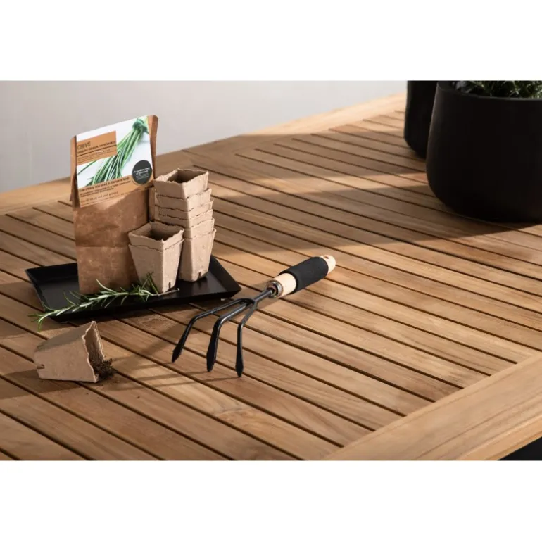 - Teak bordplade: Holdbar og naturligt oliet for lang levetid.