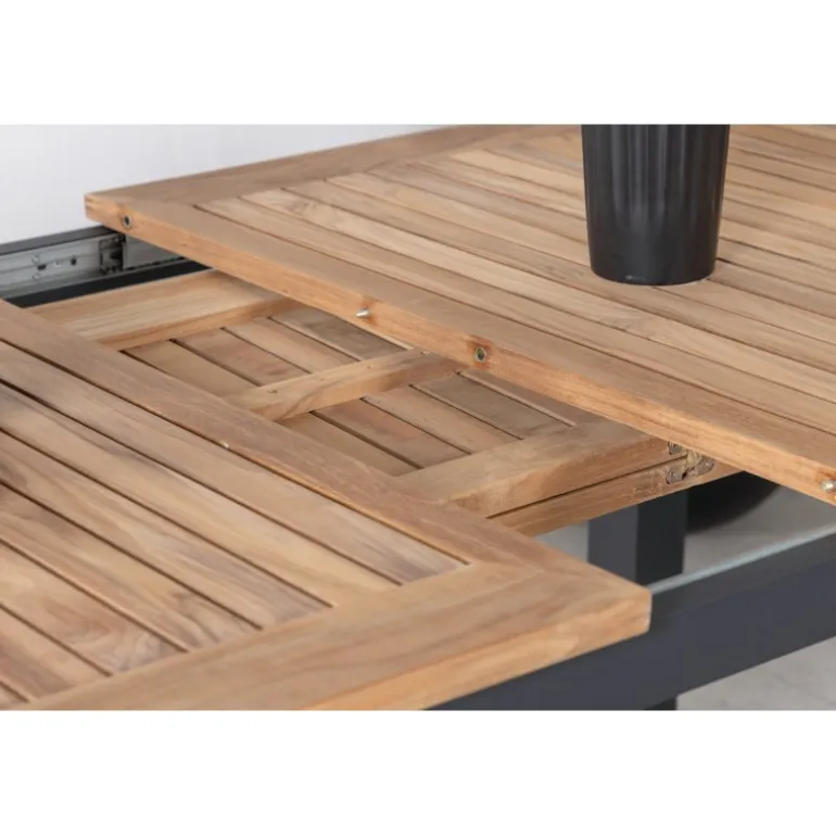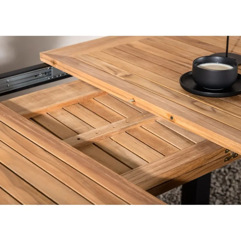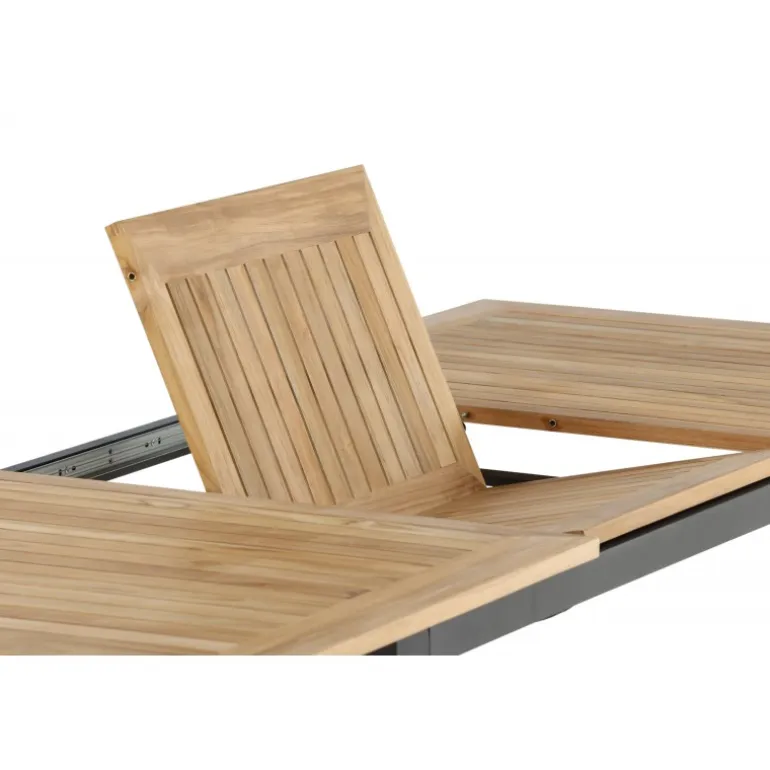 Smart, stilfuldt og holdbart spisebord – hvad mere kan du ønske dig til sommerens udendørs måltider? Panama er et udtrækkeligt spisebord i rektangulær form. Bordpladen er i smukt teak og understellet i sort metal; To enkle og holdbare materialer, der giver dig et robust spisebord. Den praktiske størrelse gør, at bordet fungerer perfekt til både små og store fester. Så gør dig klar til sommernætter og skab et charmerende centrum på terrassen, hvor familien kan samles! Plejevejledning: Vores teakmøbler er produceret af certificeret teak, som dyrkes til formålet og ikke ødelægges fra sarte regnskove. Som en af de mest holdbare træsorter indeholder teak meget olie, hvilket er nødvendigt for at materialet ikke revner. Fordi træsorten naturligt indeholder meget, behøver møblerne ikke at blive imprægneret så ofte.