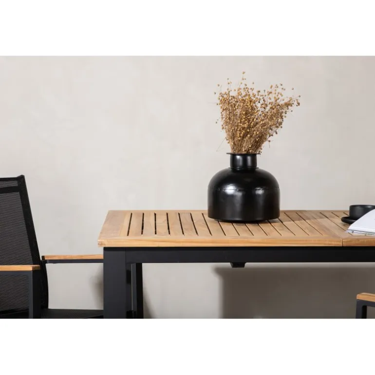 - Materiale: Smuk teak bordplade og sort metal understel.