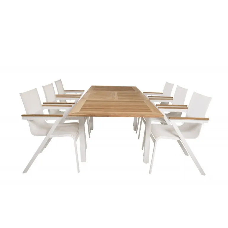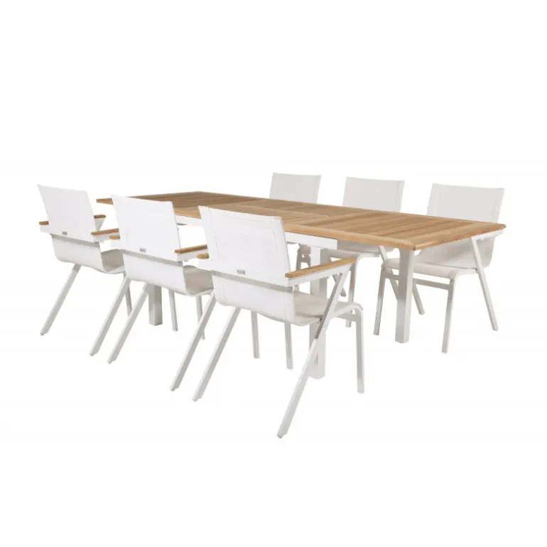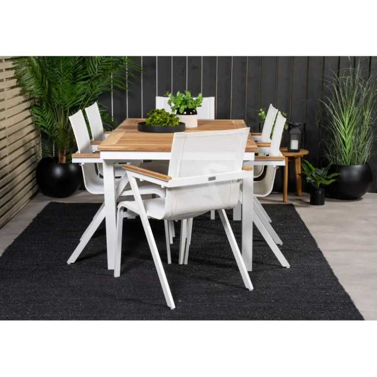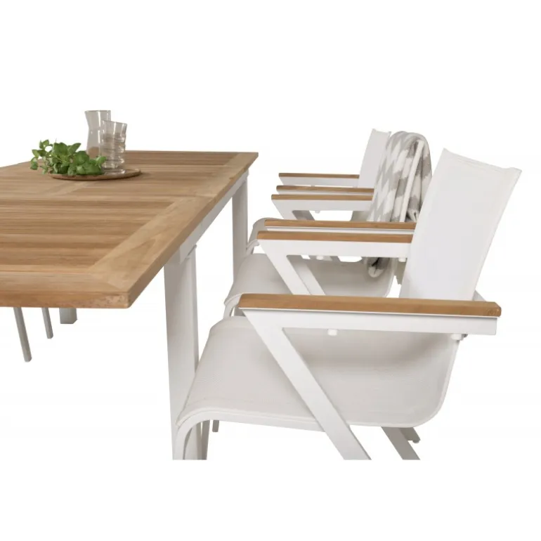 Oplev den klassiske charme med vores Panama Rektangulære Loungesæt – Havemøbelsæt. Dette sæt inkluderer et udvideligt spisebord med en smuk teakbordplade og stilfulde stole fra Mexico-serien. Perfekt til dem, der ønsker at skabe en hyggelig og moderne atmosfære i udendørsområdet eller på balkonen. Med materialer af høj kvalitet som aluminium, teak og textilene, tilbyder dette Loungesæt – Havemøbelsæt både holdbarhed og elegance. Fås i farverne natur og hvid.