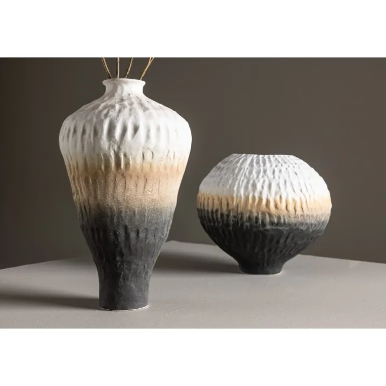 Tilfør dit hjem en strejf af elegance med denne imponerende vase i et flerfarvet design. Denne store vase har en unik farvekombination, der vil fremhæve skønheden i enhver blomstrende opstilling. Vasens bløde toner af hvid, pink og grå skaber en subtil, men iøjnefaldende effekt, hvilket gør den til et perfekt indslag i enhver boligindretning. Uanset om du vælger at fylde den med friske blomster eller lade den stå som en smuk kunstnerisk detalje i sig selv, vil denne vase helt sikkert blive et fokuspunkt i dit rum. Det moderne og slanke design skaber en harmonisk atmosfære. Placer den på spisebordet, i stuen eller på en hylde for at tilføje et sofistikeret præg til dit hjem. Opgrader din boligindretning med denne smukke keramikvase, der i sig selv er et kunstværk med en imponerende højde på 29 cm.