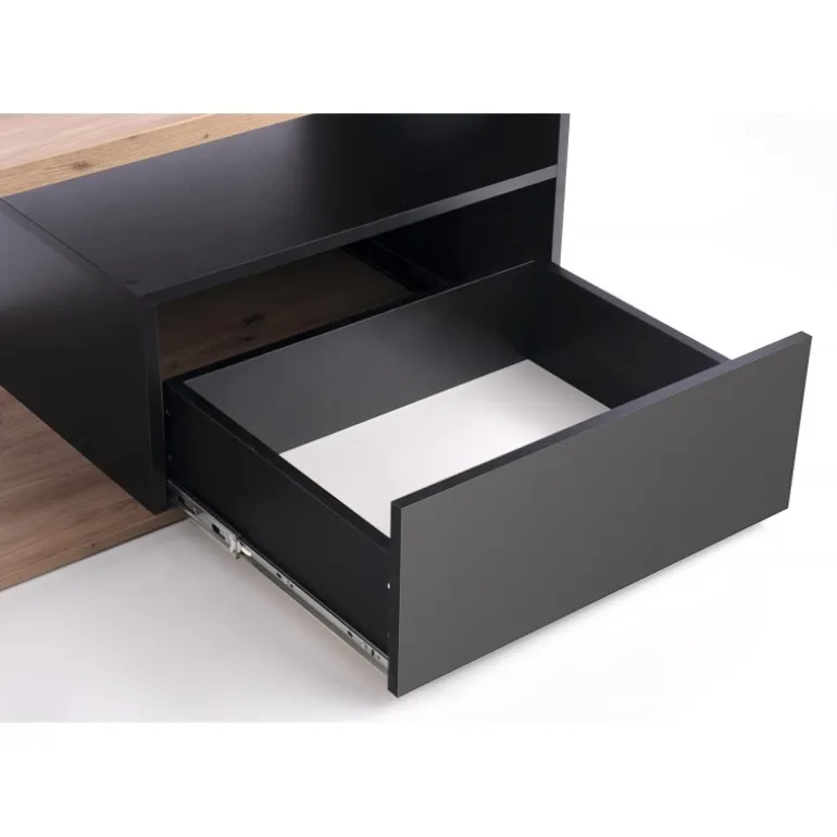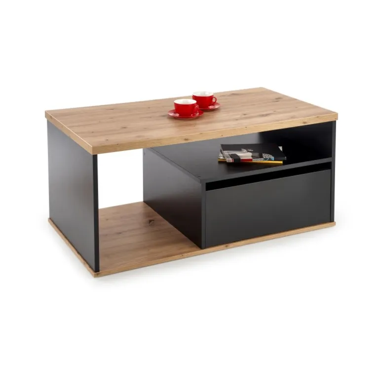 Oplev elegance og funktionalitet med PANTERA Sofabord i farven wotan eg/Sort. Dette sofabord er fremstillet af lamineret spånplade og måler 110/60/50 cm, hvilket gør det ideelt til enhver stueindretning. Med en nettovægt på 34.500 kg er det både robust og stabilt. Det stilfulde design i wotan eg og Sort tilføjer et moderne touch til dit hjem.