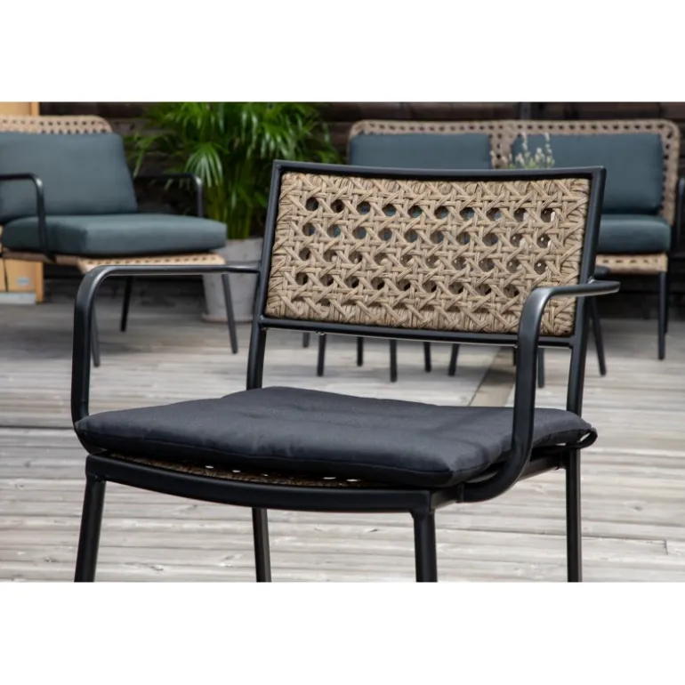 Paola Havestol er en perfekt blanding af dekorativt træ og stilfuld sort farve. De fine kontraster mellem farverne skaber en harmonisk følelse i udendørsområdet! Her får du en stol, som du nemt kan skabe charmerende udendørsmiljøer med. Stolen er stabelbar. Plejeråd: Konstrite er et plastmateriale, der er perfekt til vores skandinaviske klima. Materialet er UV-resistent og kan modstå vejr og vind. Det betyder, at møblerne ikke falmer, men vi anbefaler altid at opbevare møblerne under en møbelbeskyttelse eller et tørt og køligt sted for at forlænge levetiden.