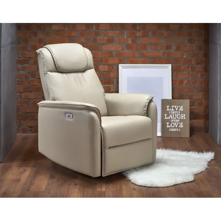 Oplev ultimativ komfort med vores PARADISE lænestol. Denne lænestol er designet med en elektrisk foldemekanisme og en gyngefunktion for at sikre maksimal afslapning. Lavet af miljøvenligt læder i en elegant cremefarve, passer den perfekt ind i enhver indretning. Dens dimensioner er 75/94/103/47 cm, hvilket gør den rummelig og behagelig. Med en nettovægt på 32,500 kg er den både robust og let at placere i dit hjem. Perfekt til enhver stue, hvor komfort og stil går hånd i hånd.