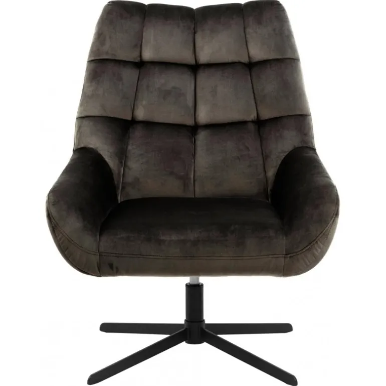 Paris hvilestol, velour gråbrun 73AC, 4-stjernet Stel mat sort ru pulverlakeret stål, med drejefunktion, firkantet syning og lynlås, 73x82x88 cm