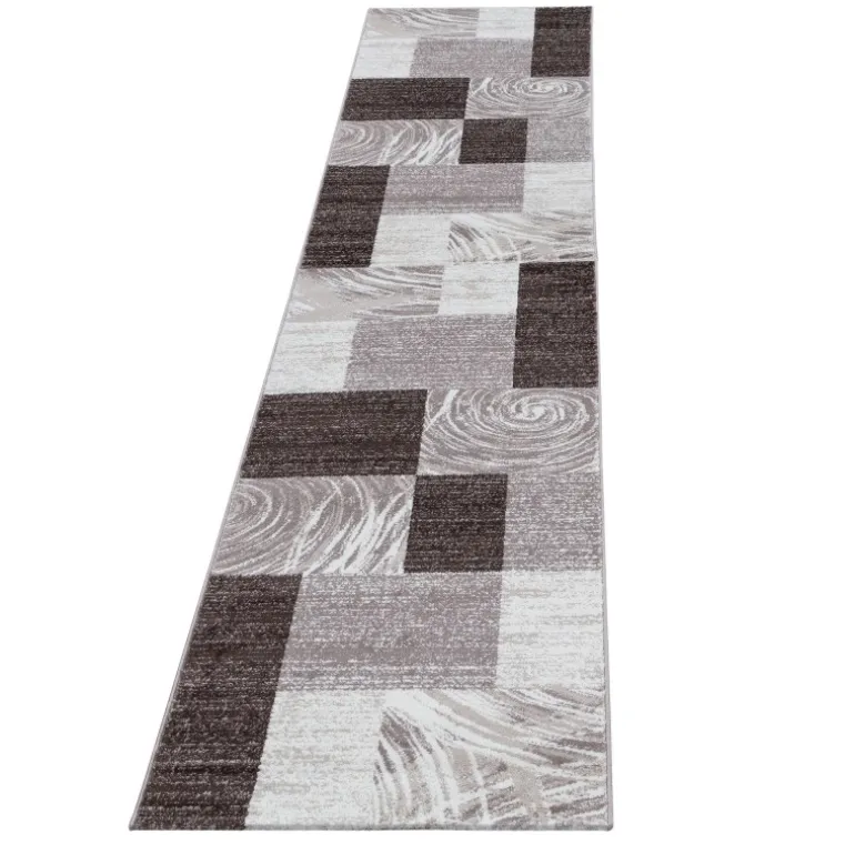 Parma Kortluvet Tæppeløber Abstrakt Ternet – Brun