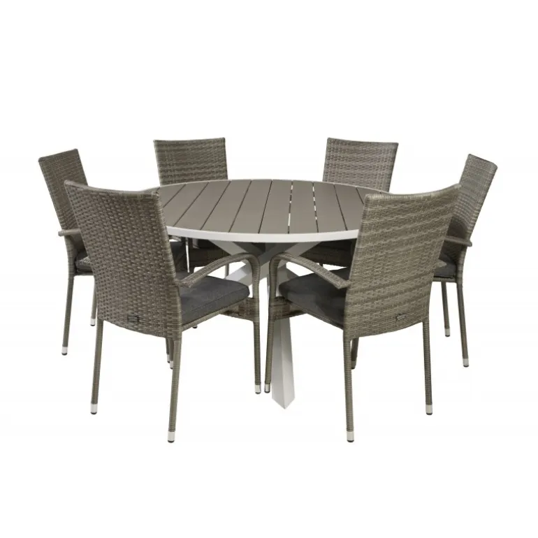 - Størrelse: Borddiameter 140 cm, stolemål 62x96x55 cm
