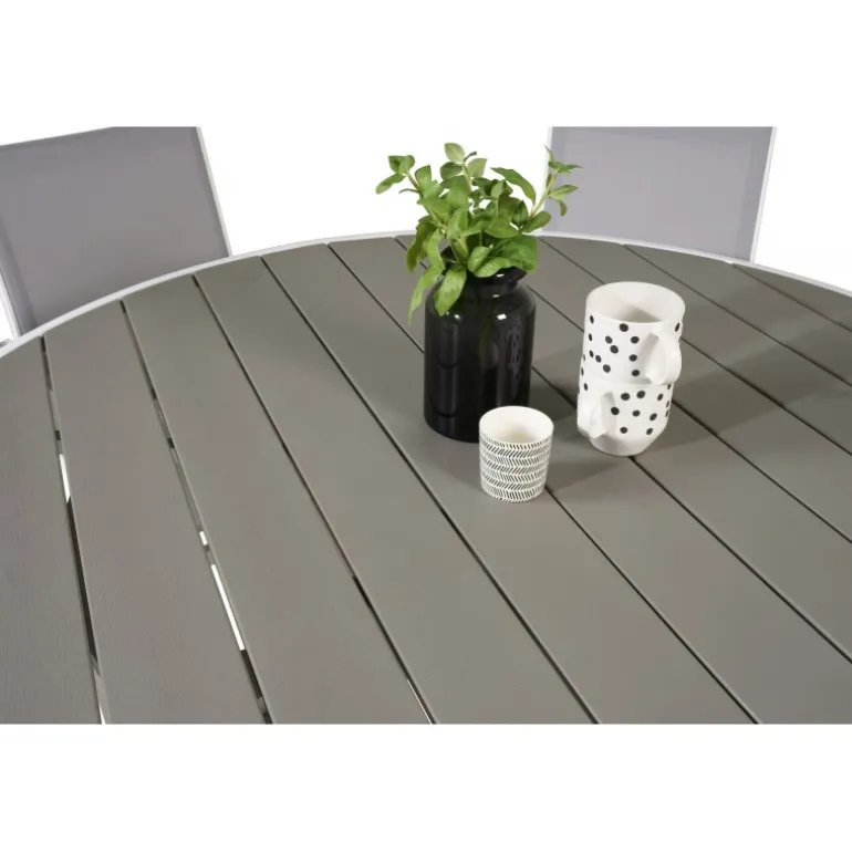 Det klassiske Parma-spisebord passer perfekt på de fleste terrasser. Her er bordet kombineret med spisebordsstole i samme serie. Loungesæt – Havemøbelsætn er ideel til dem, der ønsker at skabe en hyggelig og moderne atmosfære på terrassen. Bordpladen er lavet af aintwood, et materiale, der giver et elegant og holdbart udseende. Husk at beskytte møblerne mod høj varme og direkte sollys for at undgå deformering og skader.