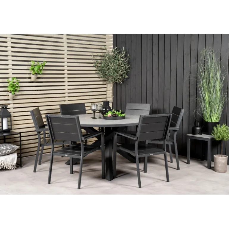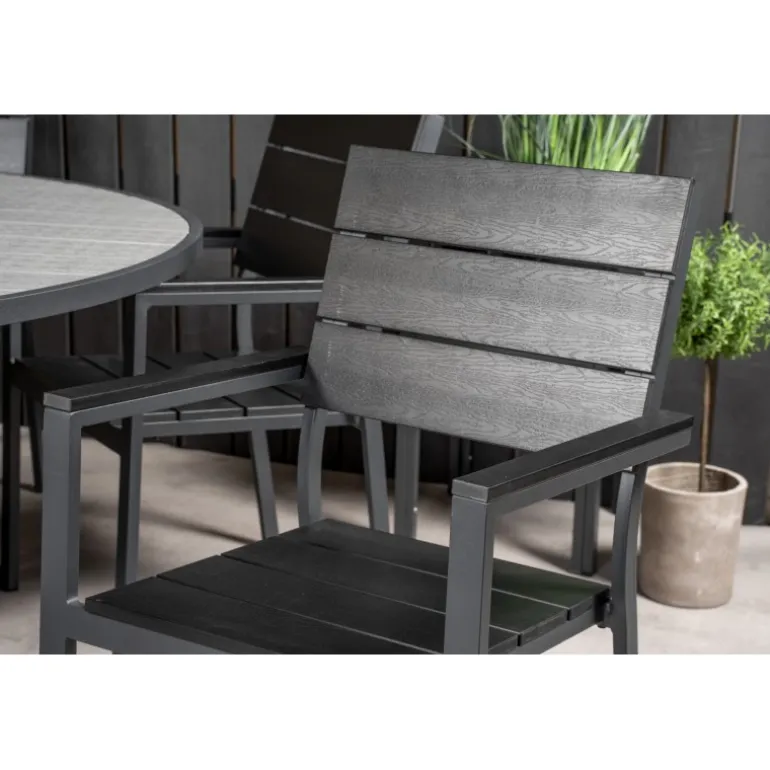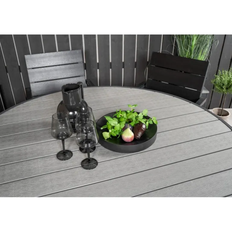 Indret din terrasse med dette stilfulde Loungesæt – Havemøbelsæt! Vores runde spisebord Parma giver en familiær følelse. Her sammen med sorte træstole i Levels-serien. Forlæng den solrige frokost i et komfortabelt Loungesæt – Havemøbelsæt!