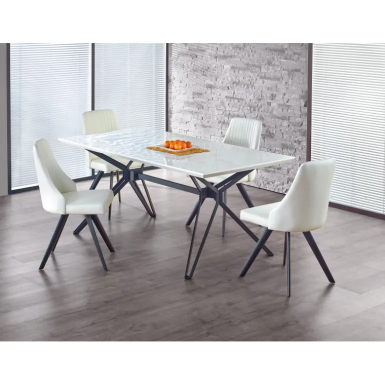 PASCAL Bordet er det perfekte valg til din spisestue eller kontor. Med dimensionerne 160/90/76 cm tilbyder dette bord rigelig plads til både arbejde og måltider. Det er lavet af lakeret MDF og pulverlakeret stål, hvilket giver det en elegant og holdbar finish. Bordet kommer i en stilfuld hvid/Sort farvekombination, der passer til enhver moderne indretning. Med en nettovægt på 33.700 kg er det både robust og stabilt. Leveres i 2 kasser for nem transport.