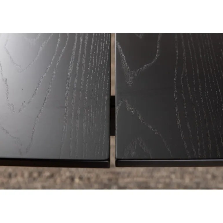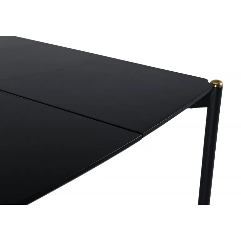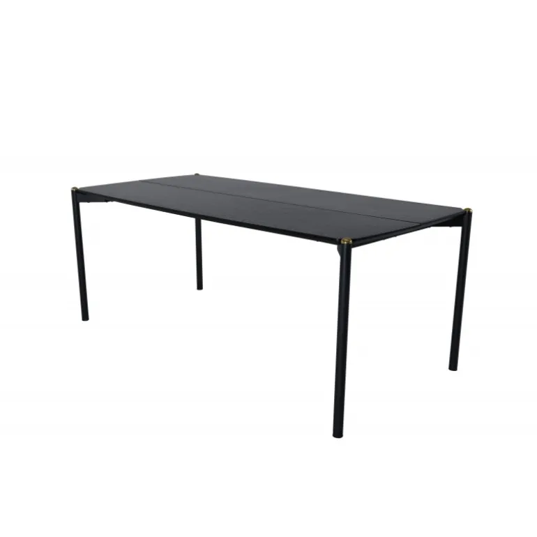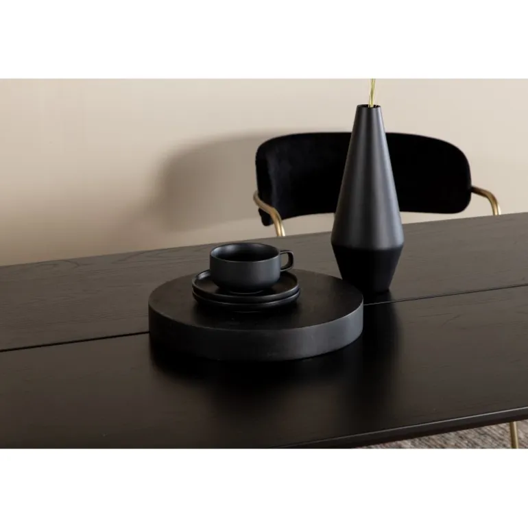 Stilfuldt, luksuriøst og tidløst – spisebordet Pelle skaber et modebevidst indtryk i dit hjem! Designet er velovervejet med lige nordiske former, der giver en elegant følelse, smalle ben i jern med en dekorativ messingknop på toppen og en rille i midten af bordpladen, som bliver en lækker detalje. Den gennemgående sorte farve er nem at matche og holder over tid. Spisebordpladen er i MDF finer. Følg vores vedligeholdelsesråd for de bedste tips, og du vil få et holdbart og slankt spisebord til ugens måltider!
