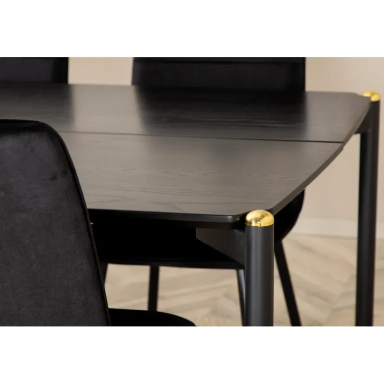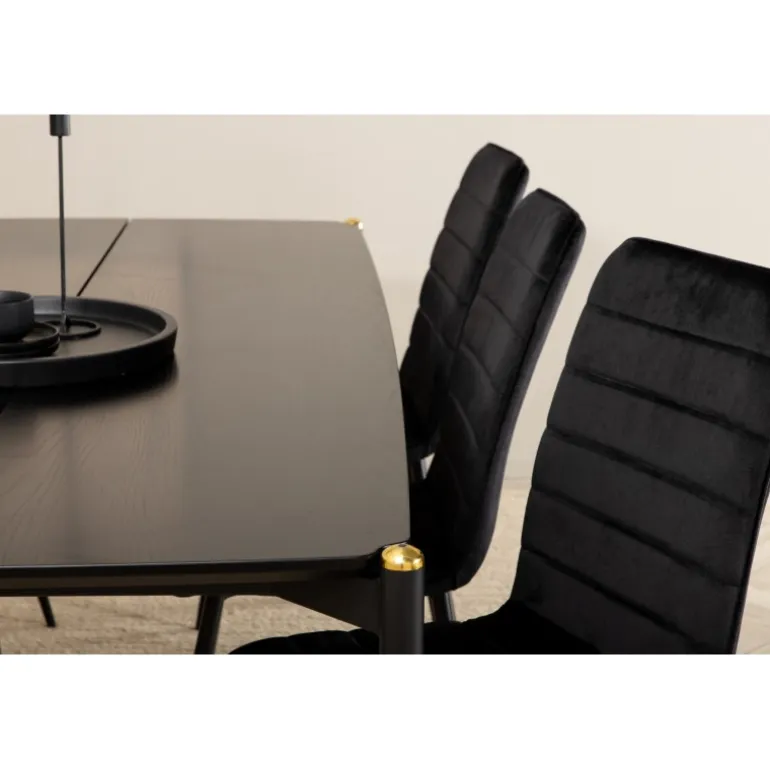 - Eksklusivt materiale: Sorte fløjlstole og MDF bordplade med finer.