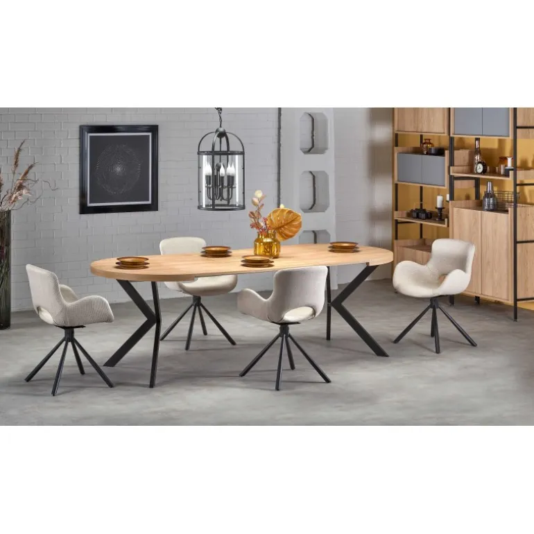Oplev PERONI bord gylden eg/Sort, det ideelle valg til moderne hjem. Dette Spisebord med udtræk er designet med en elegant kombination af lamineret spånplade og pulverlakeret stål, hvilket giver både stil og holdbarhed. Med dimensionerne fi100-250/100/75 cm tilbyder dette bord fleksibilitet til både små og store rum. Farverne gylden eg og Sort tilføjer en sofistikeret og tidløs æstetik til dit spiseområde.