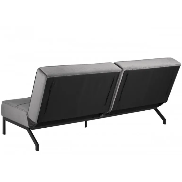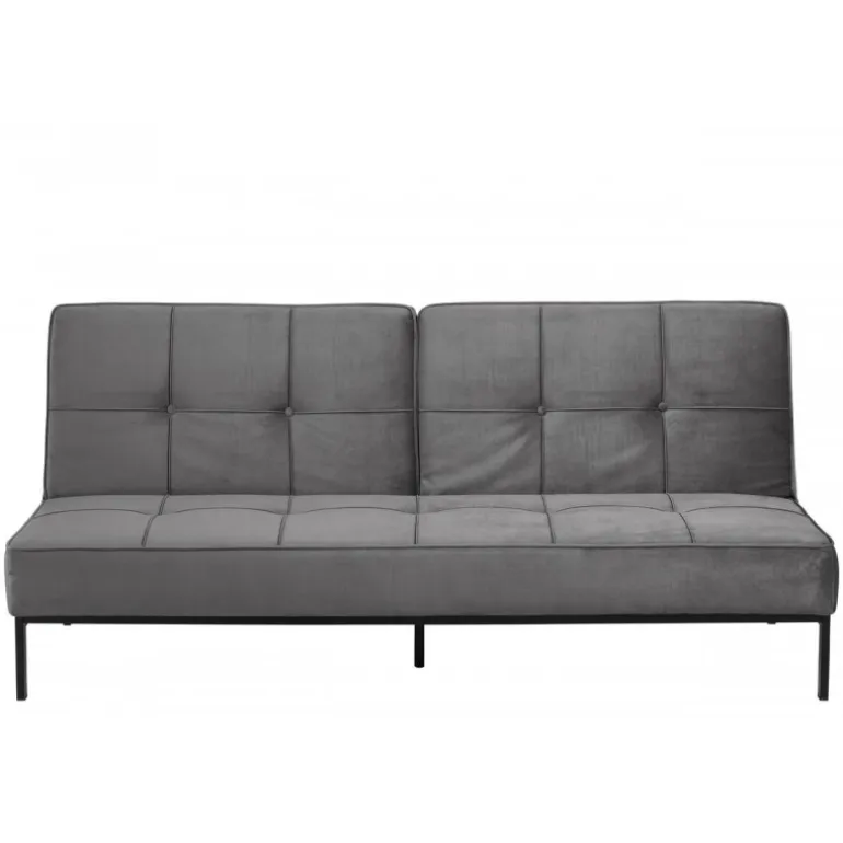 Orlanda sovesofa i mørkegråt velourstof med split ryg. Sofaen har pæne syninger og knapper i retro look. Monteret på et sort metalstel. Leveres i én kasse hvor kun benene skal monteres.