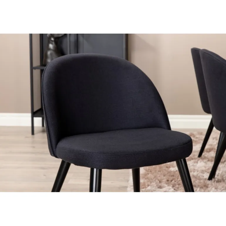 - Stilfuldt design: Moderne skandinaviske former med smalle, let udfladede ben i jern.