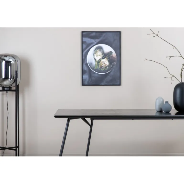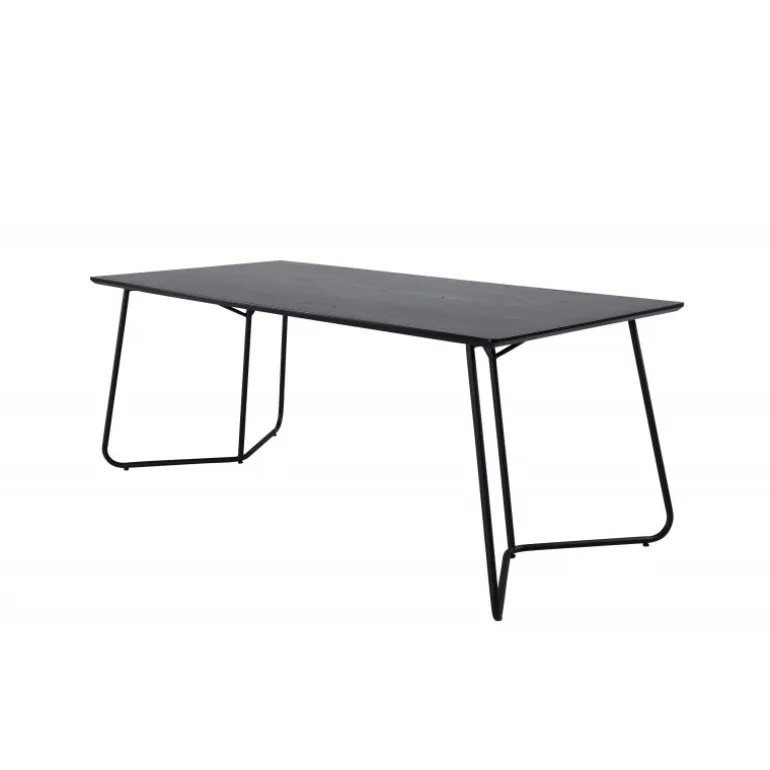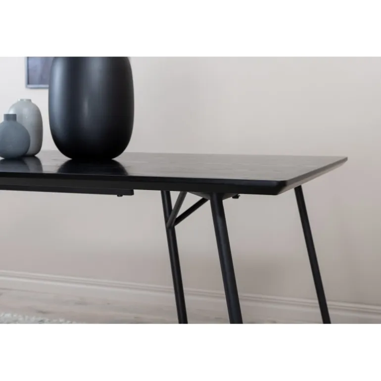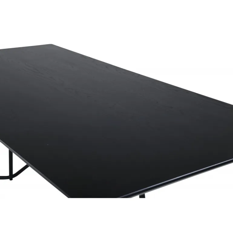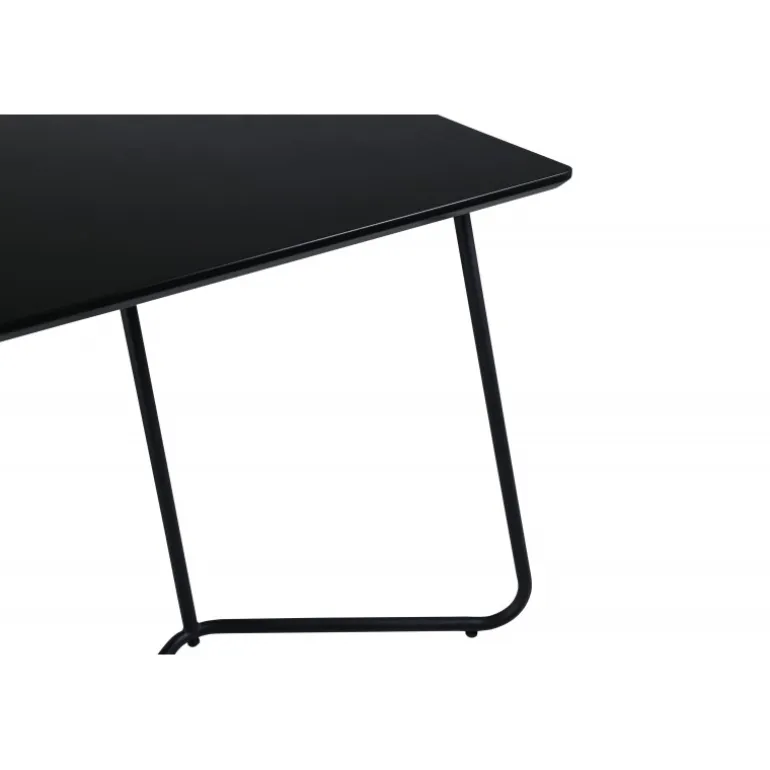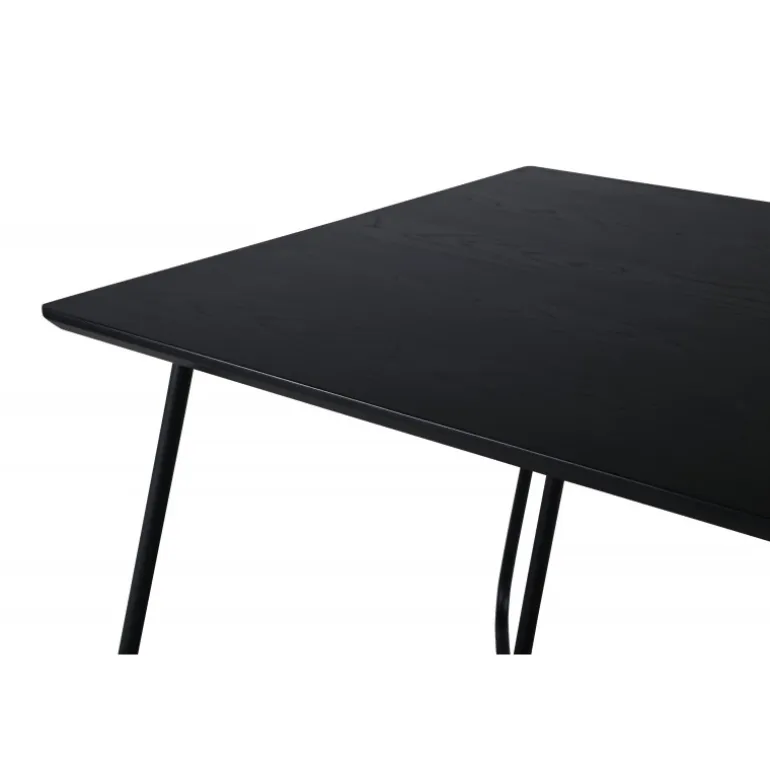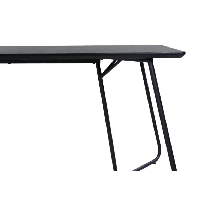 Petra er lige så praktisk som tidløs! Et gennemført sort spisebord med trekantede bordben i jern og en rektangulær bordplade i MDF. Det skandinavisk inspirerede design med smalle former og let udadgående ben giver en luksuriøs og stilfuld fornemmelse til din stue. Match med et par lækre spisebordsstole og nyd hyggelige måltider fremover! Plejeråd: MDF-plader, der er malede eller lakerede, er følsomme over for ridser og skader. Vær derfor forsigtig med pladerne for at undgå dette. Overflader malet med lak med farvepigment eller maling har en pigmentering, der giver en ikke-dækkende, transparent overflade.