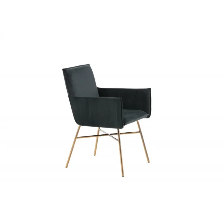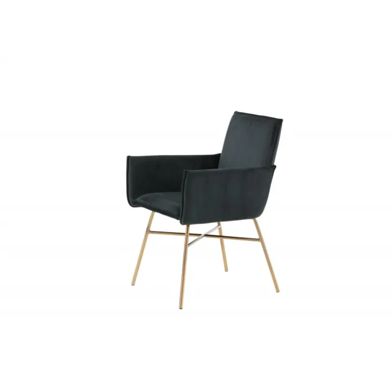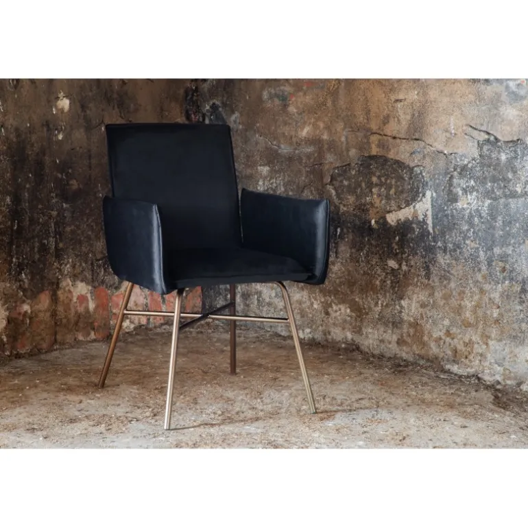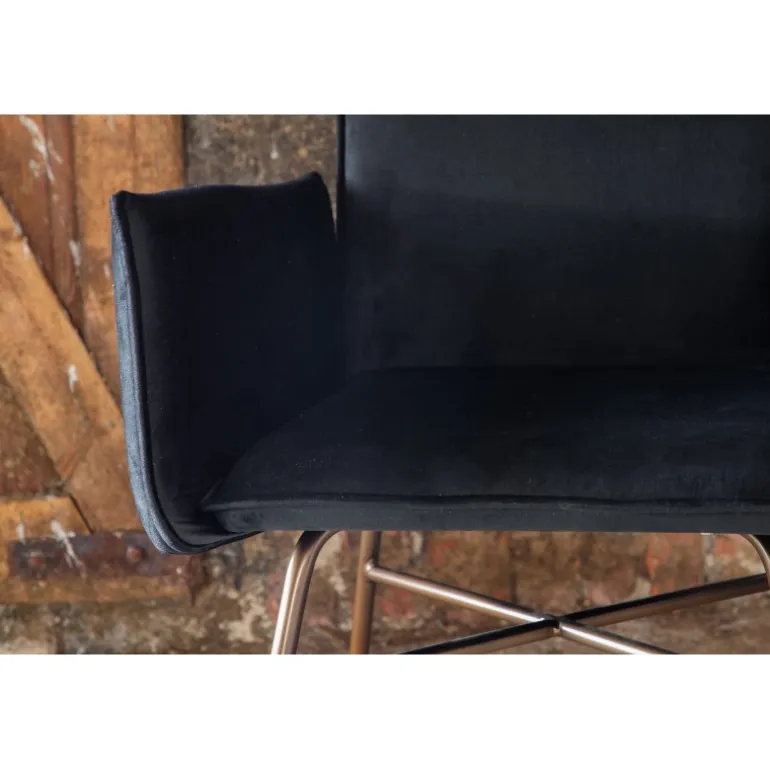 Petra – En moderne drøm af en stol, der imponerer med både komfort og stil! Det gennemførte design, rene nordiske linjer og robuste konstruktion giver et moderne og personligt præg til rummet. Stolen har en sort ryg og sæde i blødt velour og polyester stof, hvilket bidrager til god komfort. Stolens ben er dekorative og slanke, lavet af kobberfarvet jern, hvilket tilføjer en flot detalje. Indret hjemmets hjerte på en moderne, komfortabel og praktisk måde! Nogle samling kræves. Plejeinstruktioner: Velour får let aftryk, når luven lægger sig. Disse aftryk kan få stoffet til at se slidt ud, hvilket er helt normalt for denne type materiale. Afhængigt af hvordan lyset falder, kan stoffet skifte i flere forskellige nuancer.