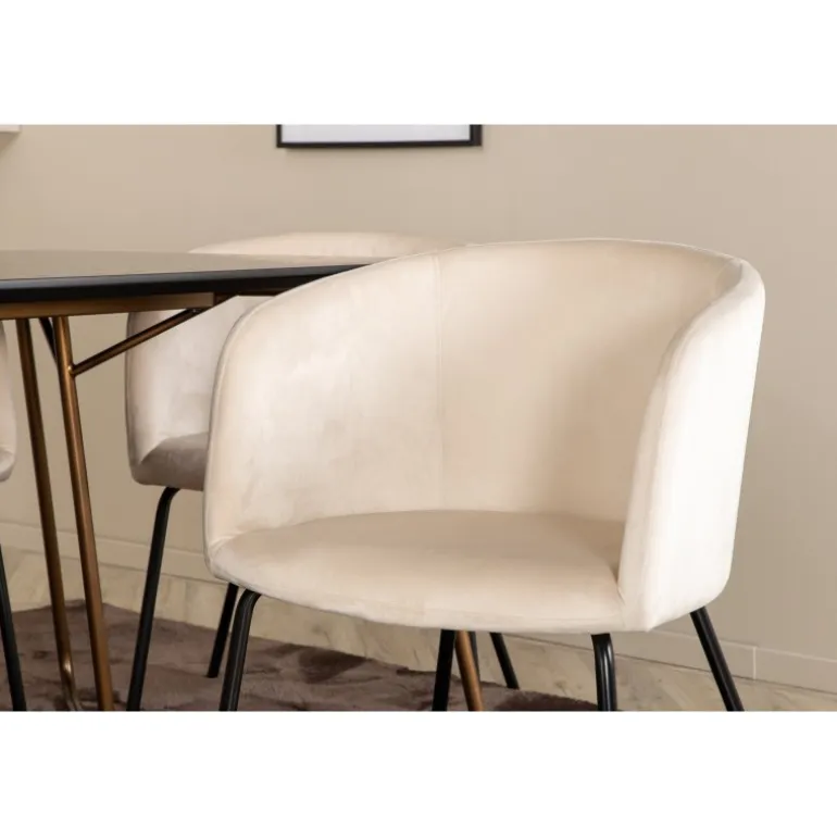 - Blødt fløjlsstof på stolene for komfort og luksus.