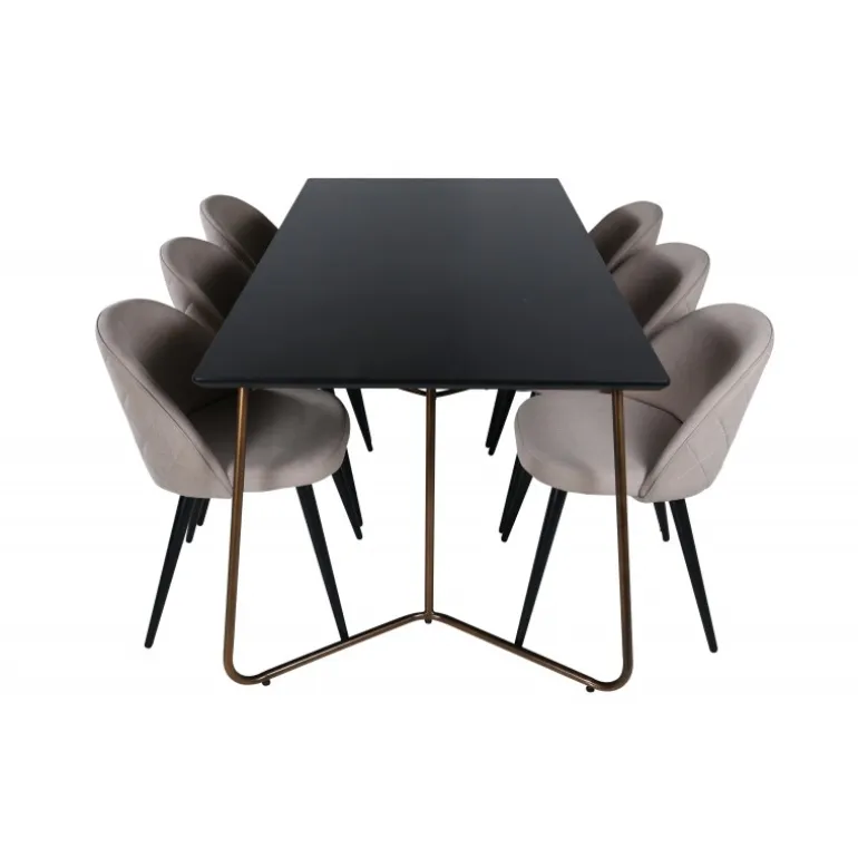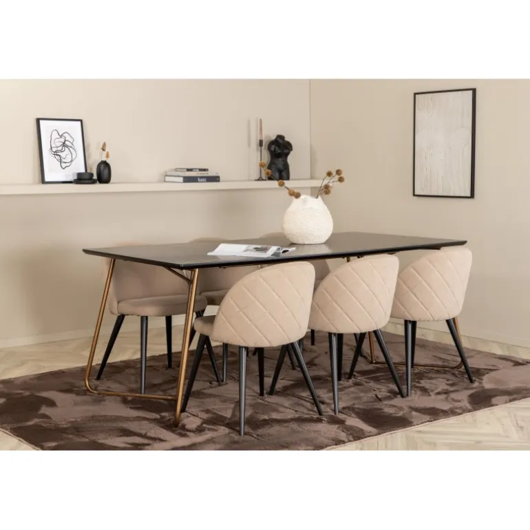 - Komplet sæt: Inkluderer 6 Velvet spisebordsstole med sorte metalben og beige sæder i polyesterlin.