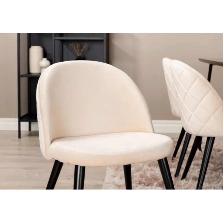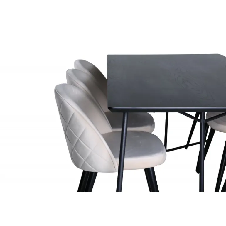 - Komfortable stole: 6 velour spisestuestole med blødt polyester sæde og sorte metalben.