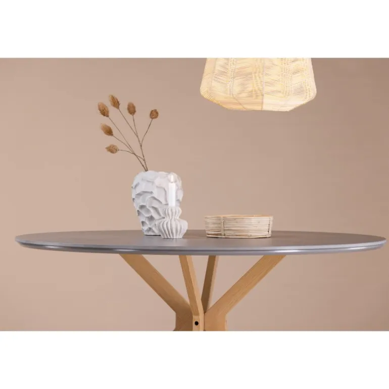 Piazza, vores populære, runde spisebord med luksuriøs fornemmelse og trendy detaljer i designet. Rundt spisebordpladen er lavet af spraystone i en slank grå farve, og kroppen har et dekorativt look med træ-krydsben, der skaber et stabilt blikfang. Et designtabel, der skiller sig ud i hvert rum og vil helt sikkert tiltrække dine gæsters øjne. Skab et dejligt centrum for dig og din familie at samles omkring!