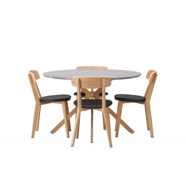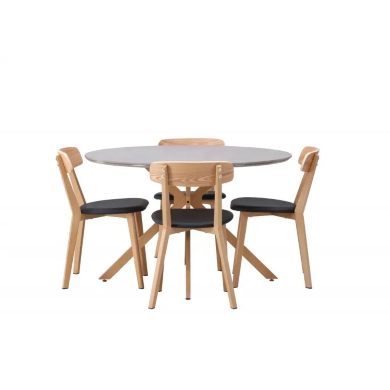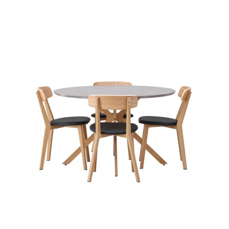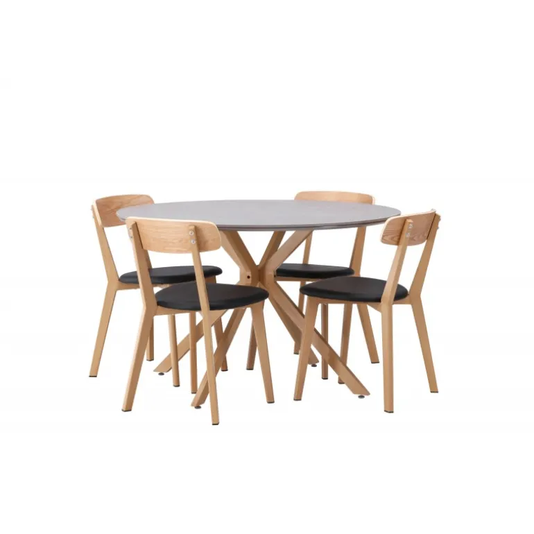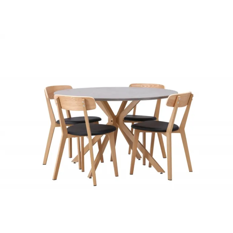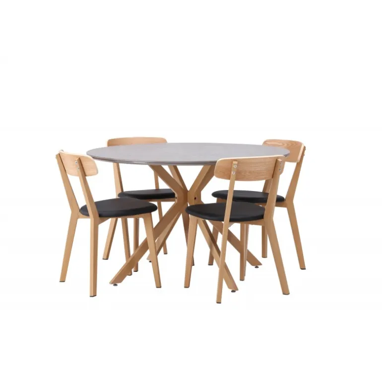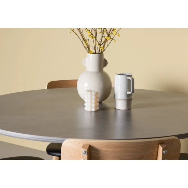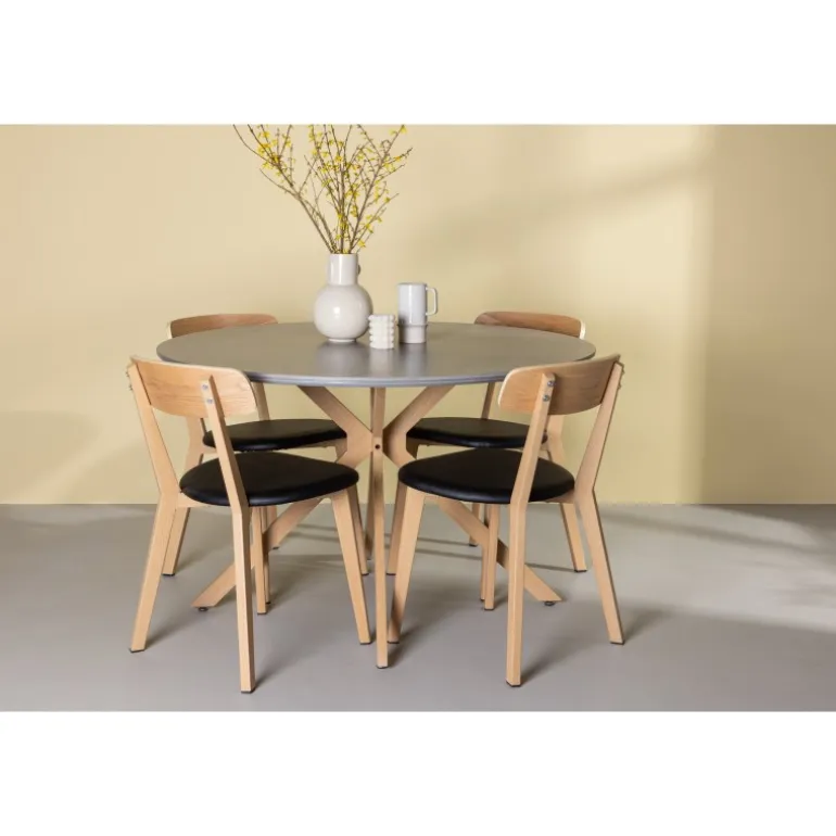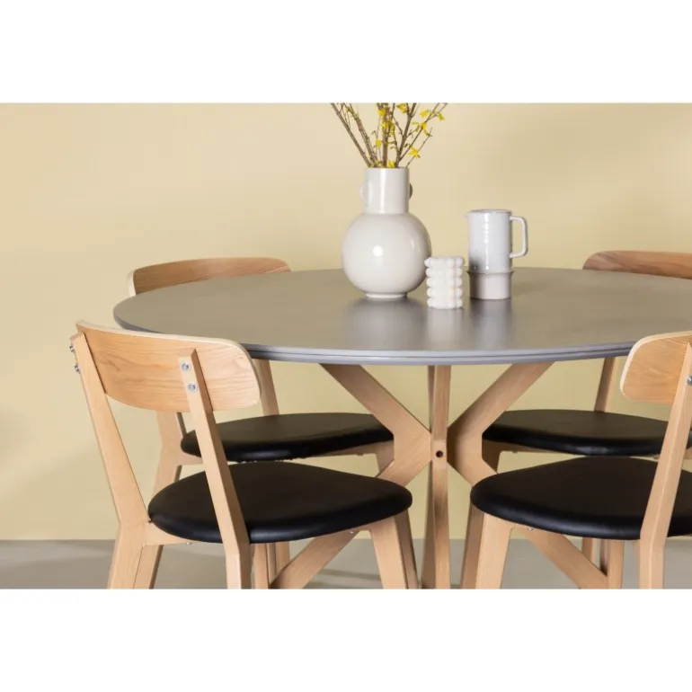 Oplev den perfekte kombination af stil og funktionalitet med vores eksklusive Spisebordssæt. Med det elegante Piazza bord og de moderne Sanjos stole skaber du en indbydende atmosfære til måltider og sammenkomster i dit hjem. Piazza bordet har en imponerende diameter på 120 centimeter, hvilket giver rigelig plads til familie og venner. Lavet af robust spraystone og med ståleben, forener det moderne design med stil. Den elegante grå farve tilføjer et strejf af sofistikering til dit rum. Sanjos stolene kommer i en naturlig farve, der tilbyder en tidløs og moderne følelse til din spisestue. Deres enkle, men elegante design komplementerer perfekt stilen på Piazza bordet. Uanset om det er en intim middag med familien eller en festlig sammenkomst med venner, tilbyder vores Spisebordssæt det perfekte sted til enhver lejlighed. Med Piazza bordet og Sanjos stolene kan du skabe en harmonisk atmosfære, hvor minder skabes og deles. Opgrader din spisestue i dag, og lad vores Spisebordssæt blive hjertet i dit hjem.