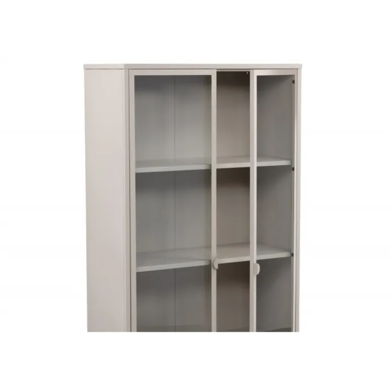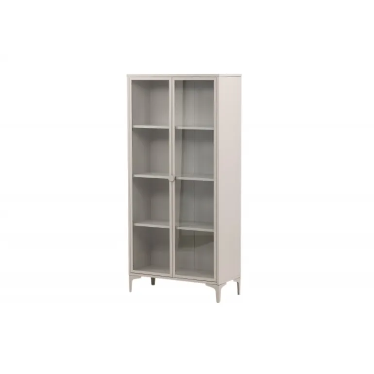 Piring Vitrineskab er en populær tilføjelse til din indretning med elegante opbevaringsmuligheder! Vitrineskabet fra Piring-serien har et moderne design med lige strukturer, lavet af pulverlakeret beige stål. Kabinetet har to høje glasdøre, som giver et dejligt lysindfald i kabinetet samt fire hylder til dit fine porcelæn eller smukke interiørdetaljer. Dette er et udstillingskabinet, der tilbyder det bedste af to verdener – vælg, hvad du vil vise frem, og hvad der har brug for smart opbevaring. Lettere samling kræves!