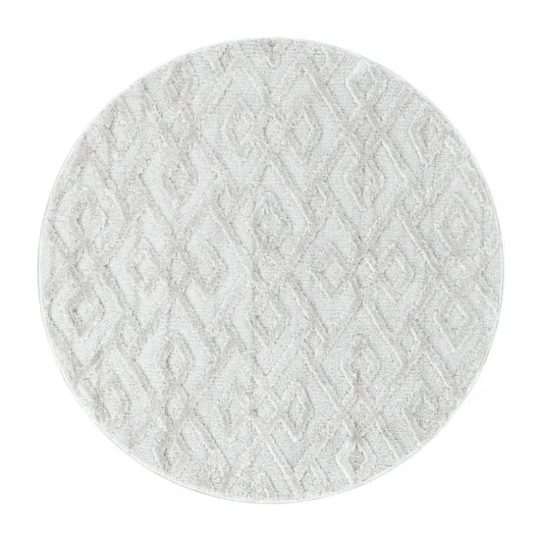 Pisa Rund Shaggy tæppe Geometrisk – Creme