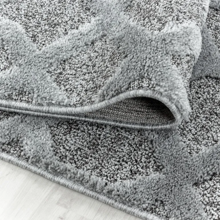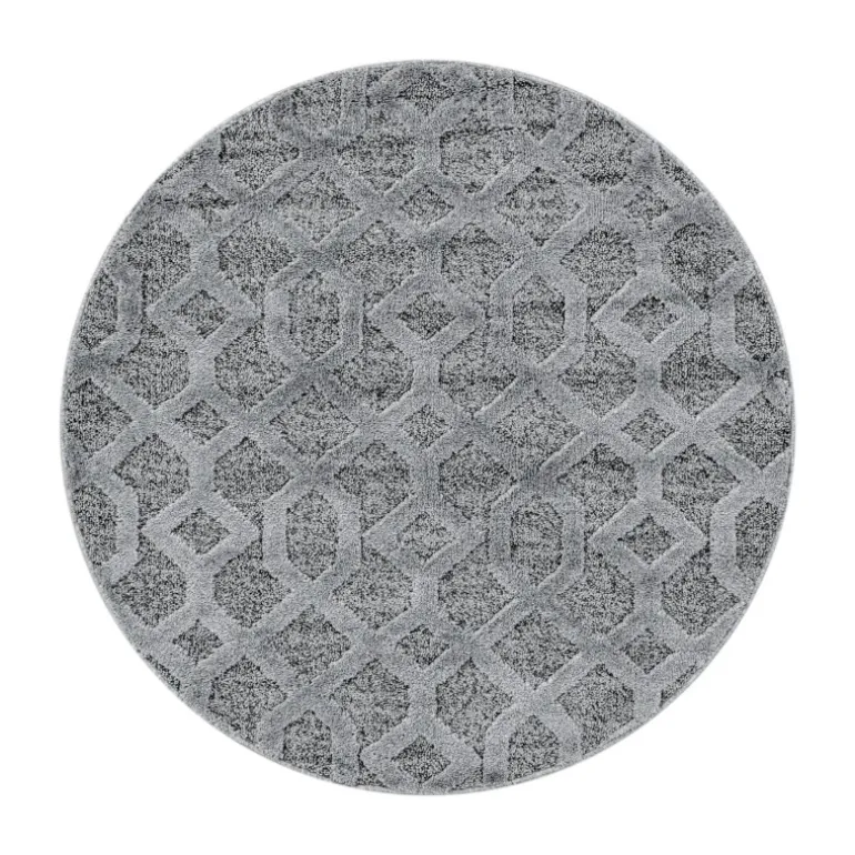 Pisa Rund Shaggy tæppe Geometrisk – Grå