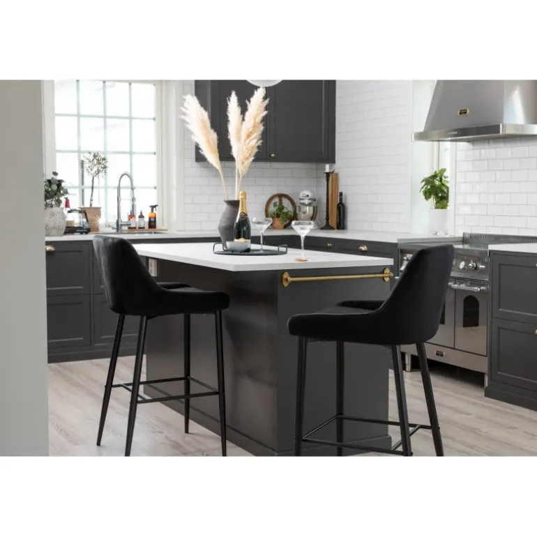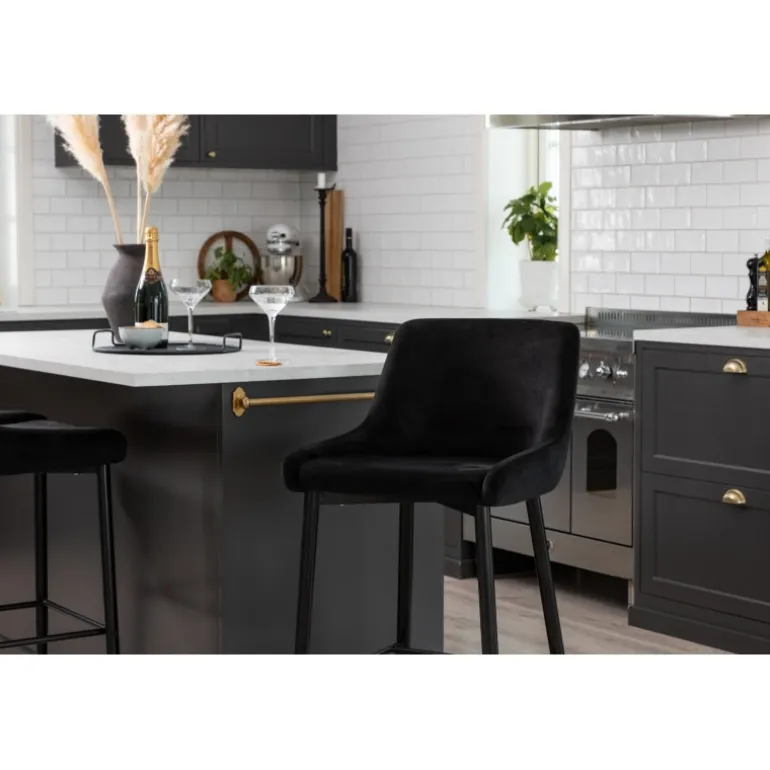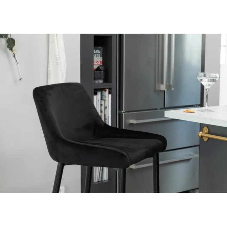 Gå ikke på kompromis med hverken design eller komfort med en barstol fra Plaza-serien! Designet er gennemtænkt med en fuldt polstret stol i sort fløjlsstof og slanke ben i sort pulverlakeret metal med en integreret fodstøtte for ekstra komfort. Nogle samling kræves. Plejeanvisning: Brug stofspray til at imprægnere stoffet inden brug, hvilket også gør det lettere at fjerne snavs og pletter i fremtiden. Fjern pletter straks, gnid ikke, men prøv forsigtigt at absorbere med en klud.