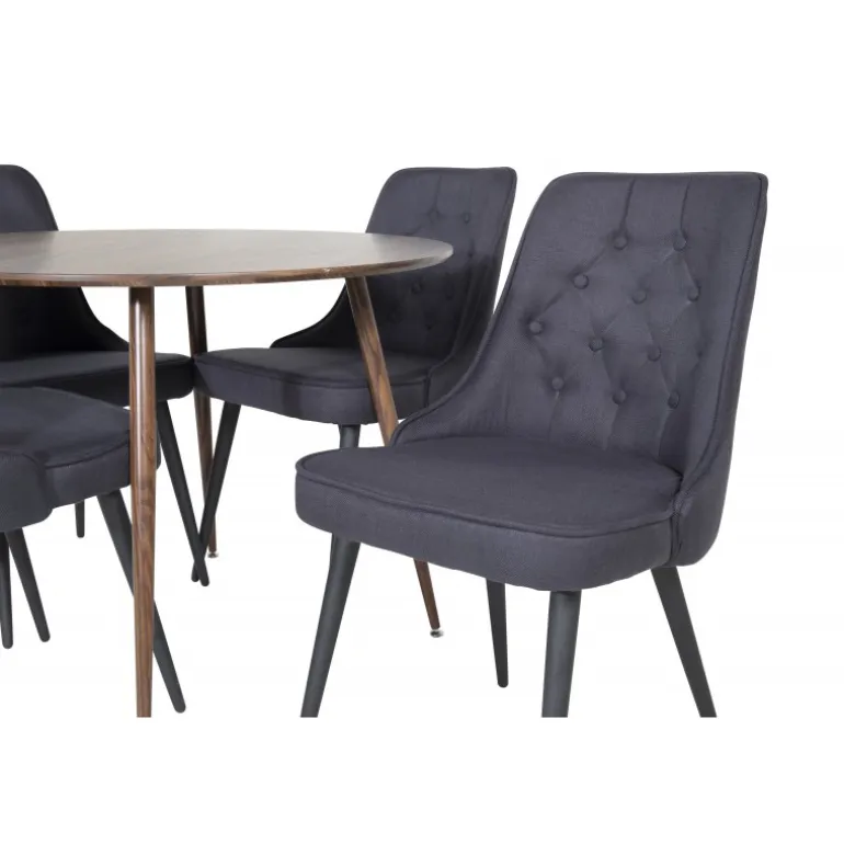 Vores runde spisebord Plaza sikrer, at ingen ender på kanten. Sammen med de indbydende spisebordsstole i Velvet-serien skaber det en kombination, der helt sikkert vil invitere til lange og dejlige stunder omkring middagsbordet med dine kære. Plaza Rund Spisebordssæt er designet med både stil og komfort for øje, og passer perfekt ind i ethvert moderne hjem.