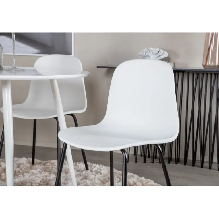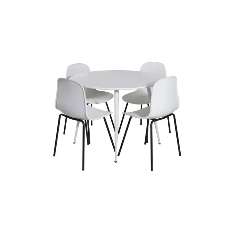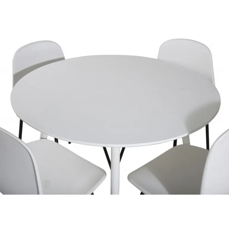 Forkæl dit hjem med et moderne og stilfuldt Plaza Rund Spisestuesæt. Dette sæt, bestående af Plaza spisebord og Arctic spisestuestole, er den perfekte kombination til hjemmets hjerte. Med sit elegante design passer det lige så godt til dine behov som til din øvrige indretning. Fremstillet af MDF, plast og stål, tilbyder dette sæt holdbarhed og komfort. Fås i klassiske farver som sort og hvid, og med inkluderede hynder for ekstra komfort.