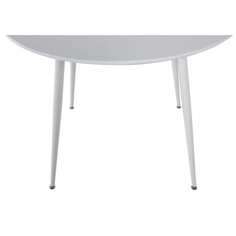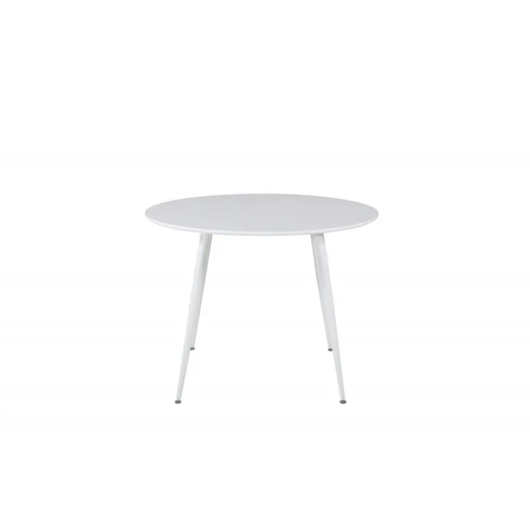 Et rundt spisebord er perfekt for dem, der ønsker at skabe en behagelig, social og indbydende atmosfære i køkkenet eller stuen. Her kan samtaler og latter flyde frit omkring et stilfuldt spisebord i klassisk design fra Plaza-serien. Spisebordet er gennemgående i tidløs hvid farve – bordpladen i MDF og benene i metal. Lad tiden her blive dagens højdepunkt!
