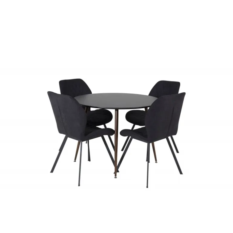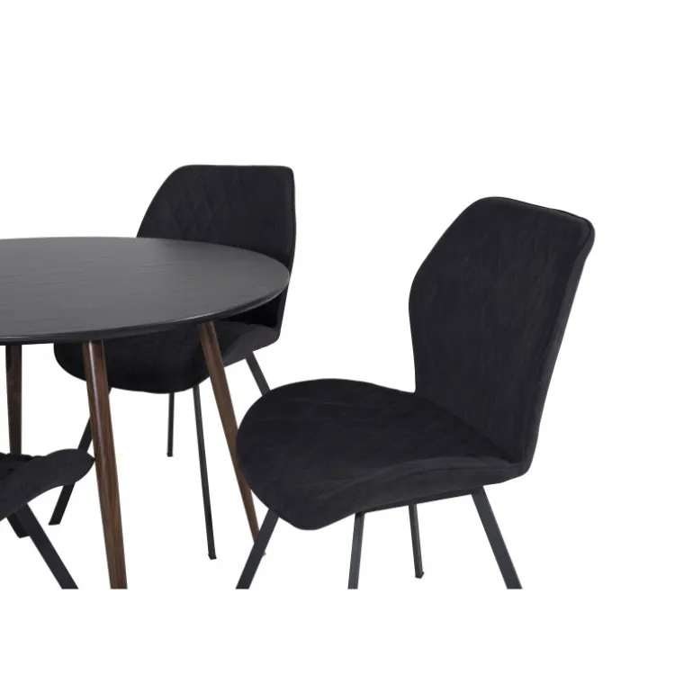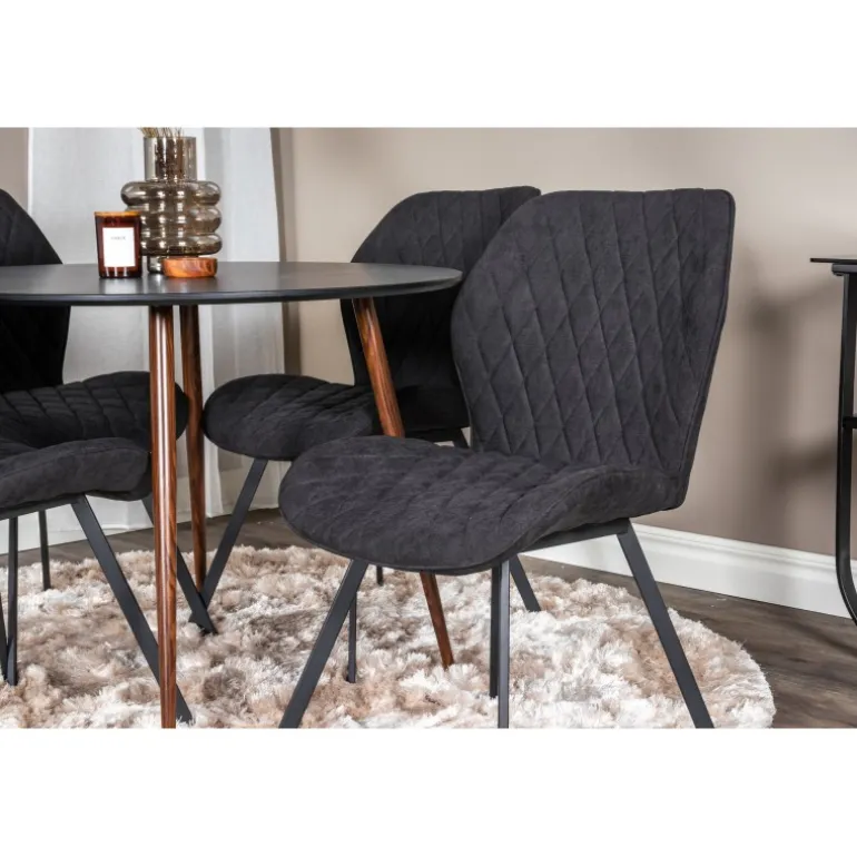 Her har vi et elegant og luksuriøst Spisebordssæt, der er moderne i sit design! Spisebord Plaza i et slankt design, sammen med vores populære velourstole i Gemma-serien – den perfekte kombination for dem, der ønsker en trendy og komfortabel spisestue.