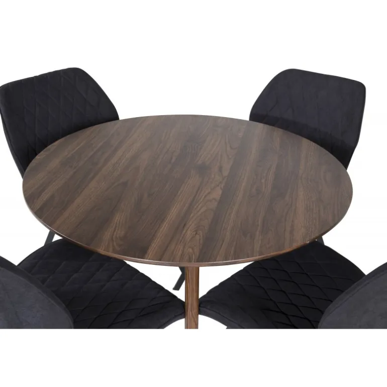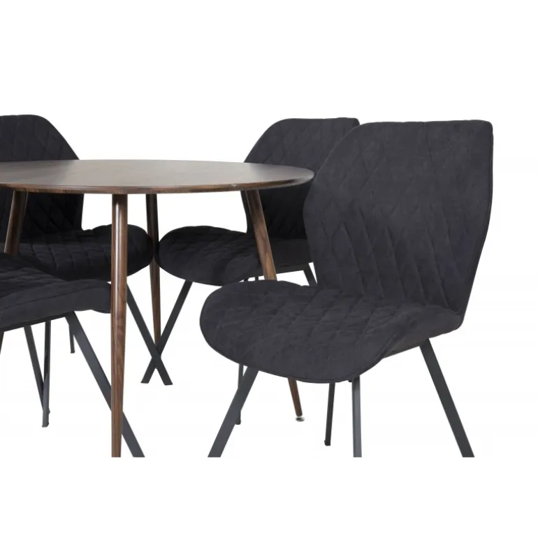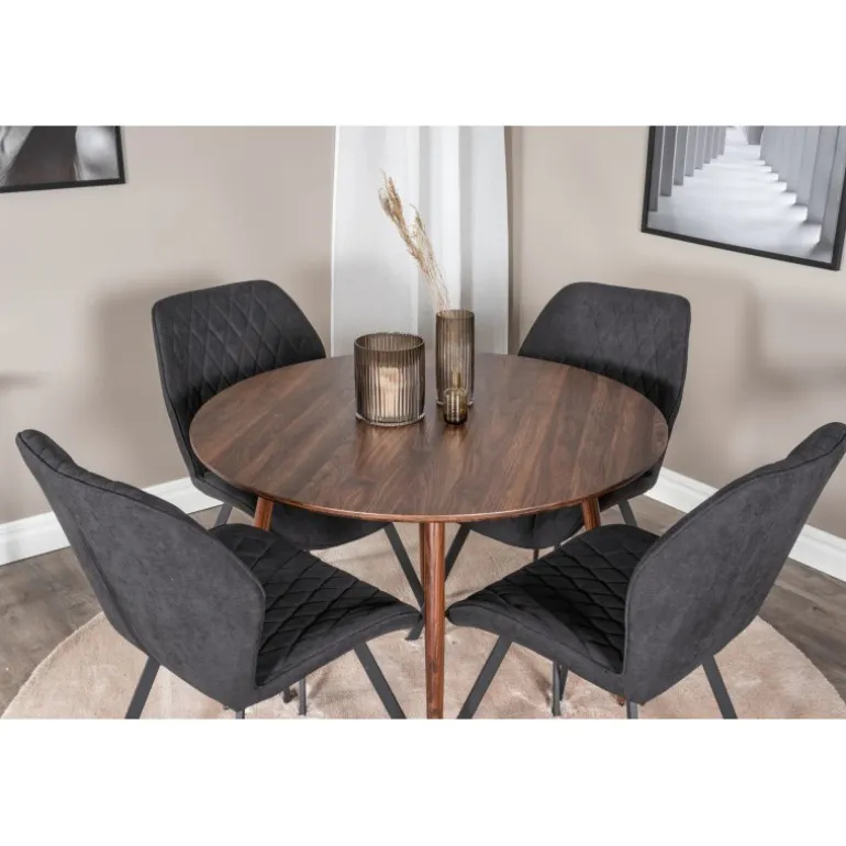 En moderne Spisebordssæt med en indbydende følelse i et enkelt design. Her er vores runde spisebord Plaza kombineret i smukt træ med komfortable spisebordsstole i Gemma-serien. Indret stuen med en familievenlig Spisebordssæt, der sandsynligvis passer lige så godt til dine behov som til din øvrige indretning.