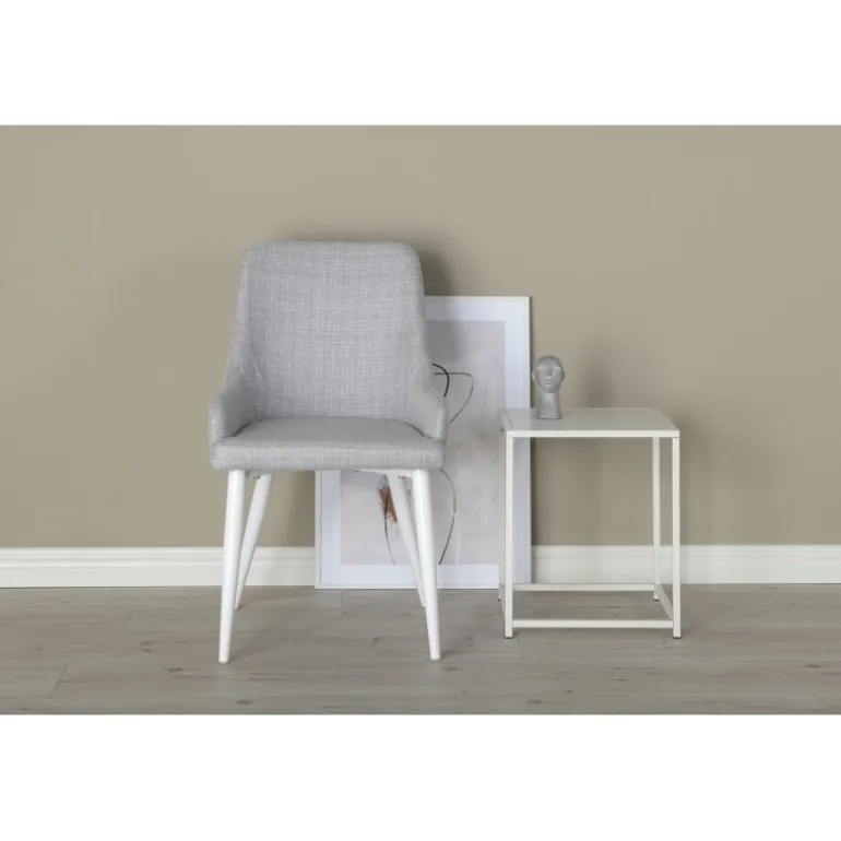 Skab en charmerende midtpunkt i hjemmets hjerte med de elegante spisebordsstole fra Plaza-serien! Den gennemtænkte moderne design har en ramme i hvid pulverlakeret metal, og ryglænet/sædet er i lysegrå polyesterstof med blød polstring. Lige så stilfuld for øjet som komfortabel at sidde på! Nogle samling kræves. Plejeråd: Brug stofspray til at imprægnere stoffet før brug, hvilket også gør det lettere at fjerne snavs og pletter senere. Fjern pletter med det samme, gnid ikke, men prøv forsigtigt at absorbere med en klud.