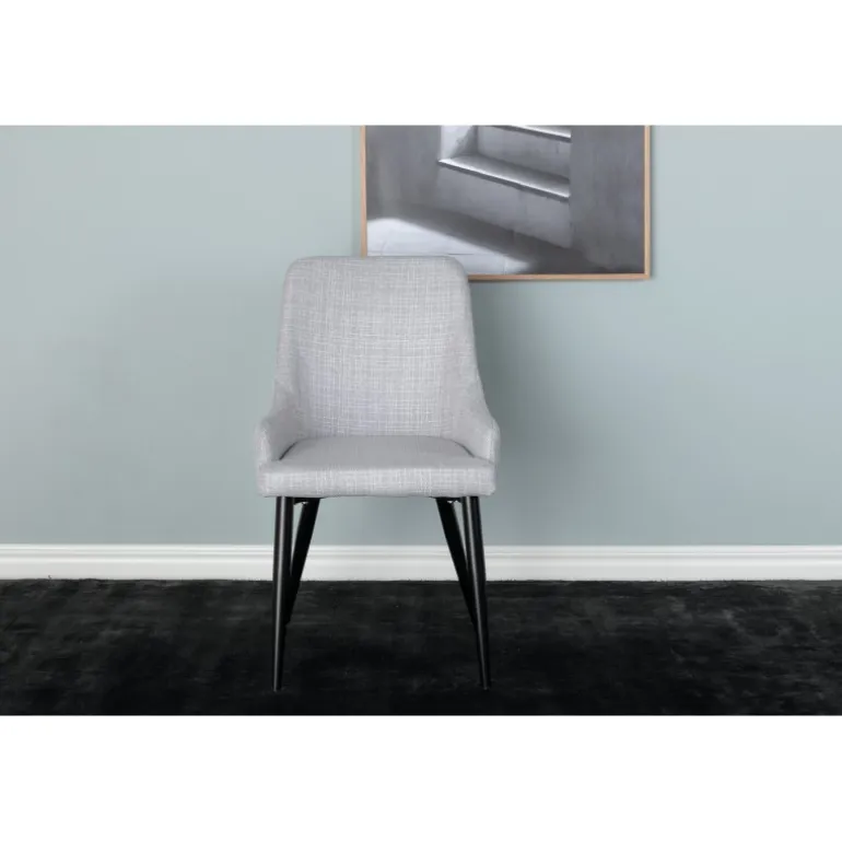 Sid komfortabelt i en klassisk spisebordsstol fra Plaza-serien! Denne spisebordsstol har et fuldt polstret design med ben i sort pulverlakeret metal og ryg- og sæde i lysegrå polyesterstof med blød polstring for ekstra høj komfort. Let samling er nødvendig. Skab en hyggelig atmosfære i hjemmets hjerte! Plejetips: Brug tekstilspray til at imprægnere stoffet før brug, hvilket også gør det lettere at fjerne eventuelle pletter og snavs i fremtiden. Fjern pletter med det samme, gnid ikke, men forsøg forsigtigt at suge dem op med en klud.