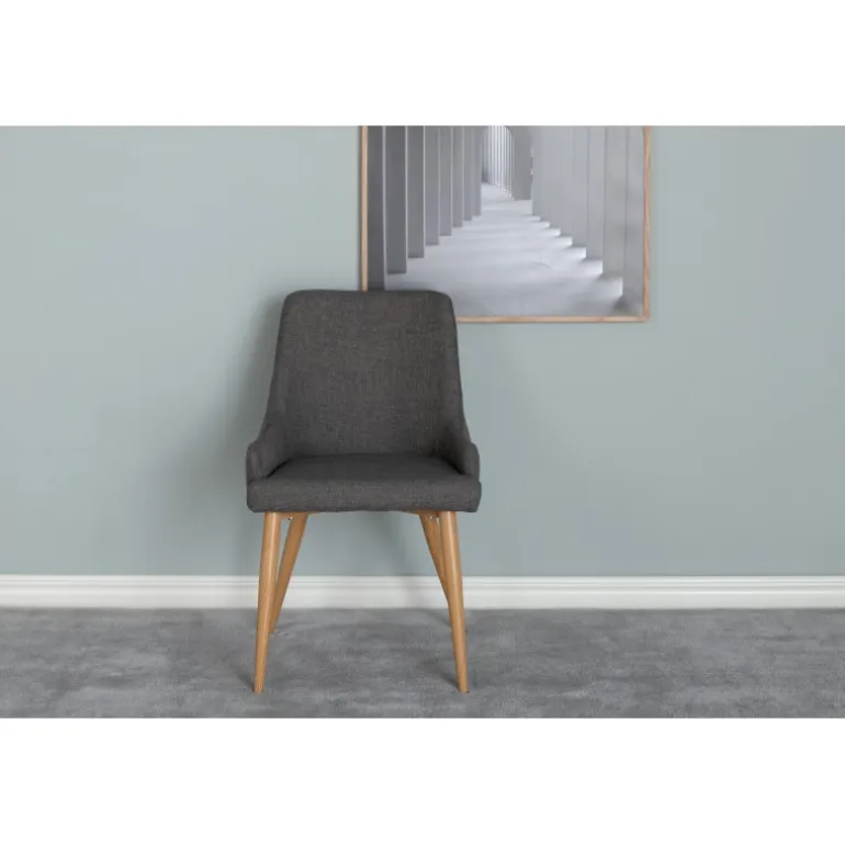 Skab et charmerende midtpunkt i hjemmets hjerte med hjælp fra stilfulde spisestole fra Plaza serien! Den gennemtænkte moderne design har en ramme i egetræs-foliebelagt metal og ryg/sæde i mørkegråt polyesterstof med blød polstring. Lige så flot at se på som komfortabel at sidde på! Lettere samling er påkrævet. Plejeråd: Brug tekstilspray til at imprægnere tekstilet, før du begynder at bruge det; det vil også gøre det lettere at fjerne snavs og pletter i fremtiden. Fjern pletter med det samme, gnid ikke, men prøv forsigtigt at opsuge med en klud.