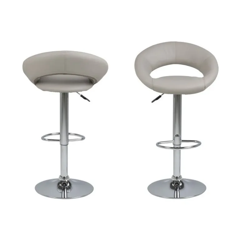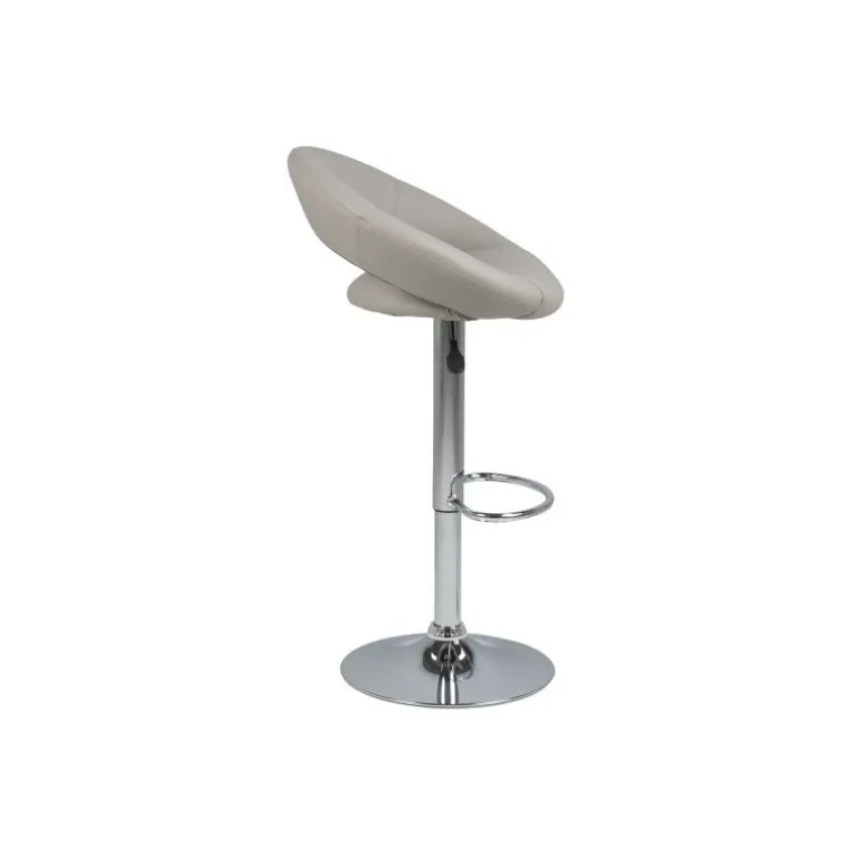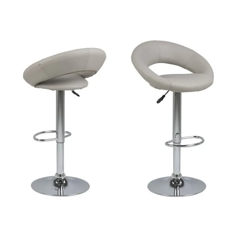 Perth barstol i brunt læderlook, med trompetfod i krom, fodsøtte og hæve/sænke funktion. Stolen har et moderne formsprog med de afrundede former, hvilket giver stolen et elegant udtryk.