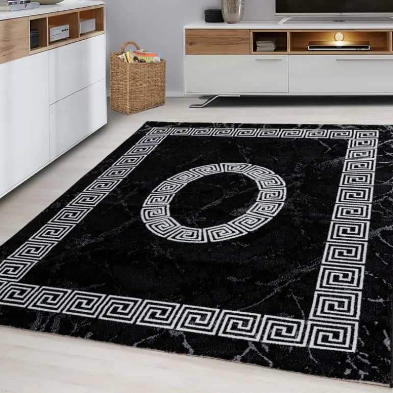 Plus Kortluvet tæppe Meander – Sort