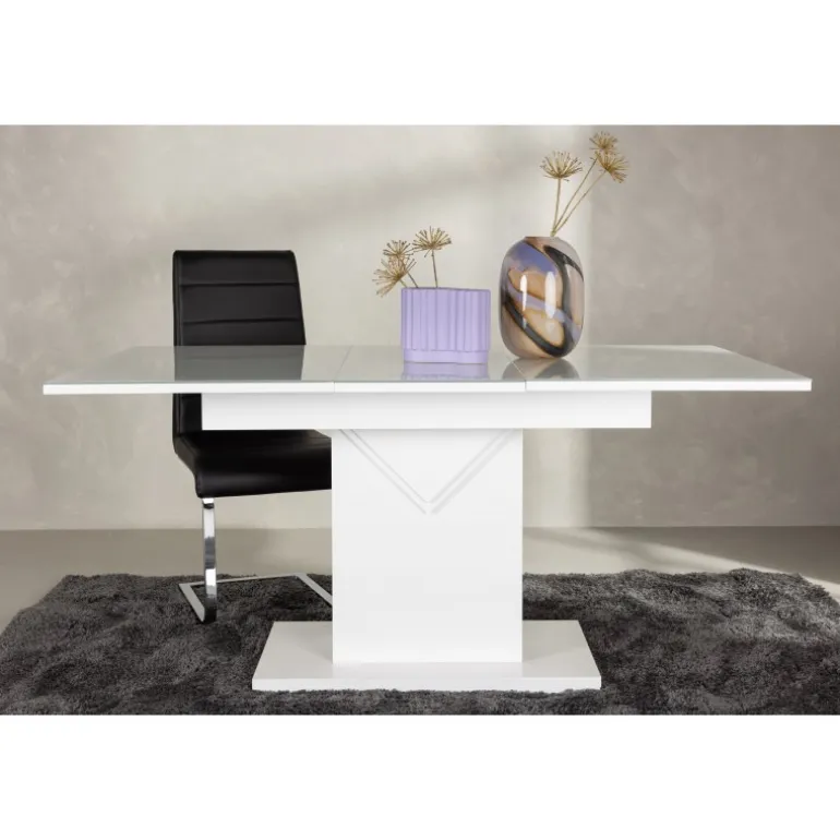En elegant og pompøs spisebord fra Pluto-serien er måske præcis, hvad din stue har brug for! Spisebordpladen er i MDF med en glasplade på toppen, og understellet er robust og centralt placeret. Spisebordet er udtrækkeligt, hvilket gør det velegnet til både små og store selskaber. Inviter til mange sociale stunder fremover!